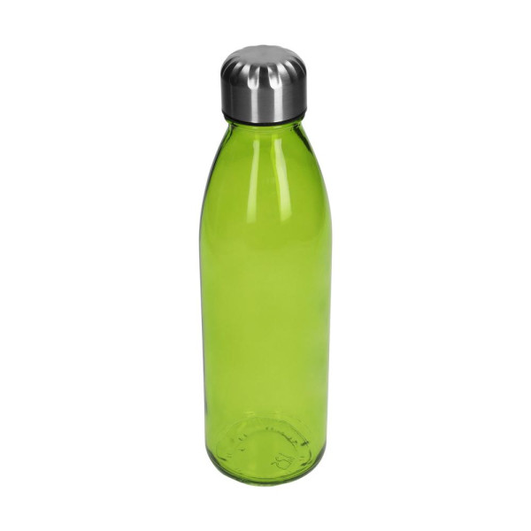Die ideale Glasflasche für daheim und unterwegs. Der Flaschenkörper besteht aus Sodalime-Glas. Der Silikonring im Inneren des metallenen Schraubdeckels macht die Flasche auslaufsicher. Füllmenge: 0,6 Liter.