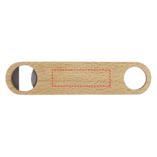 Flaschenöffner aus Edelstahl mit Holzoberfläche. Verfügt über einen Aufhänger am Griff. mehr