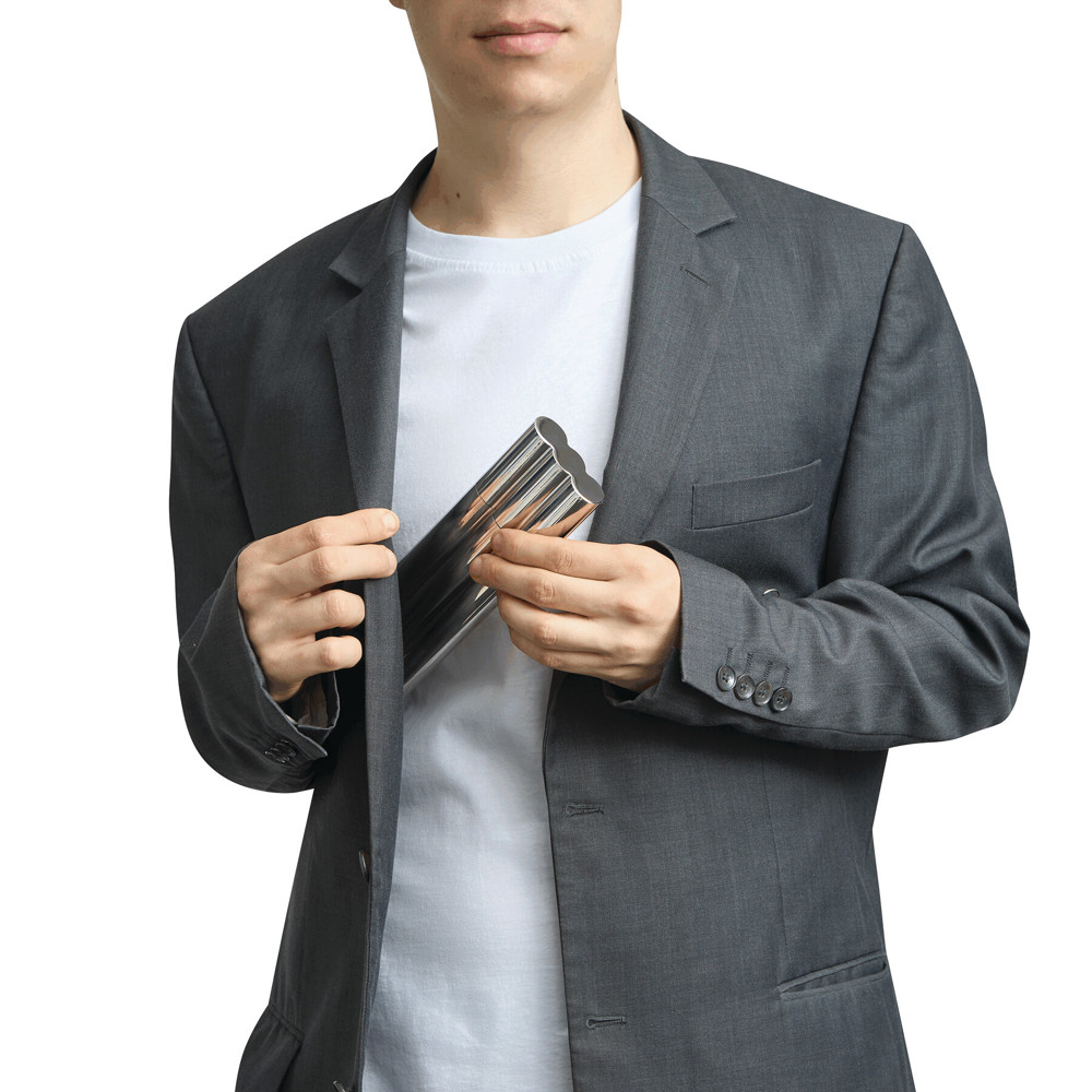 Edelstahl-Flachmann CIGAR STYLE: mit Schraubverschluss und 2 Tuben für das sichere Aufbewahren von Zigarren (geeignet für Zigarren mit einem Durchmesser von ca. 20 mm), Füllmenge ca. 60 ml, in Box