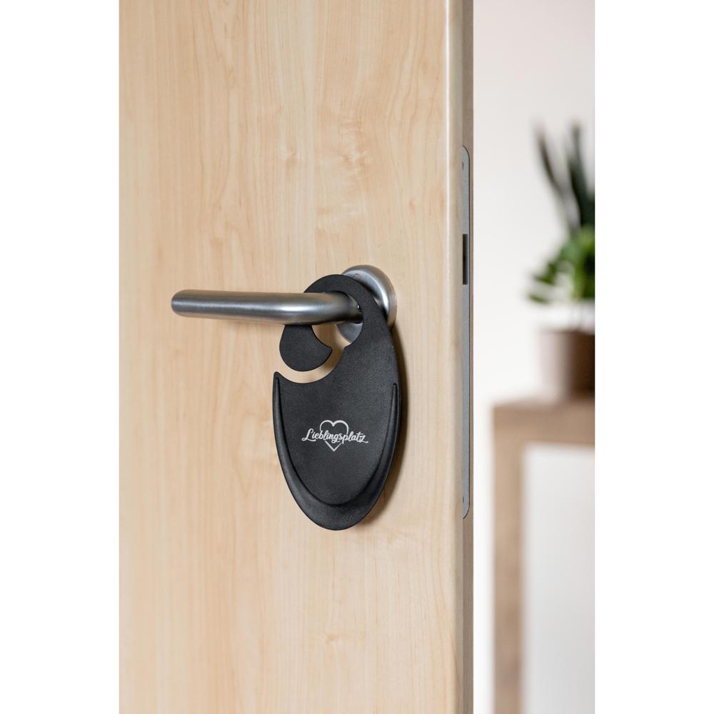 Trendiges Design aus recyceltem Material. Die ausgeklügelte Form vereint zwei praktische Funktionen: Kann als Türstopper und "Bitte nicht stören"-Schild verwendet werden. Integrierter Haken zum Aufhängen an der Türklinke.