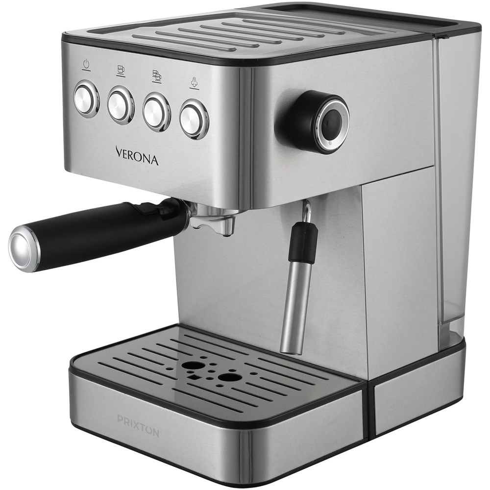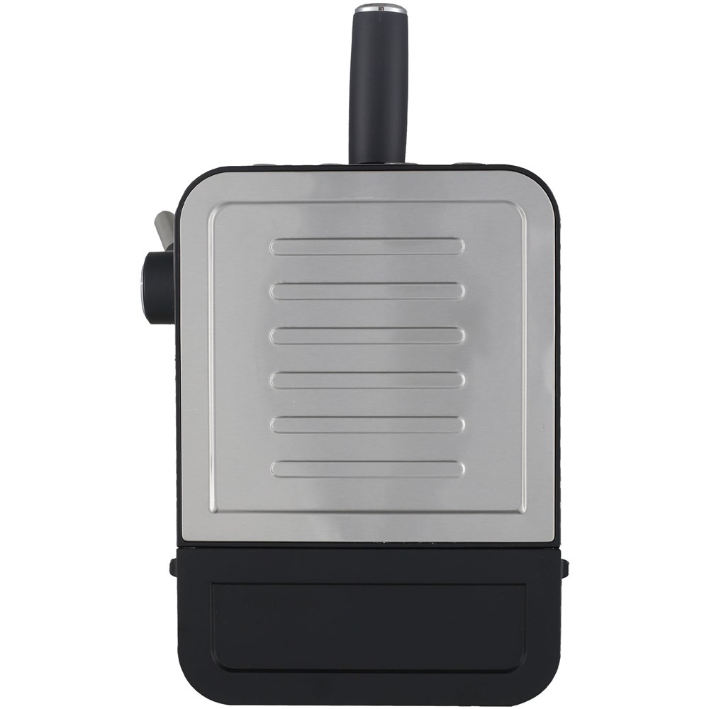 Kaffeemaschine für 1 oder 2 Tassen mit regulierbarem Dampf zum Erhitzen und zur Schaumbildung. Aluminiumtablett an der Oberseite, das Wärme abgibt, um die Tassen warm zu halten. Integriertes Schutzsystem gegen Überhitzung und Überdruck. Doppellagiger Filter aus rostfreiem Stahl für einzigartigen Geschmack und Aroma in jeder Tasse Kaffee. 850 W-Motor. Pumpe aus Italien mit einem Druck von 20 bar. Innenkessel aus hochfestem Aluminium. Automatische Funktion. 4 beleuchtete Tasten: Ein/aus, 1 Tasse, 2 Tassen und Dampf.