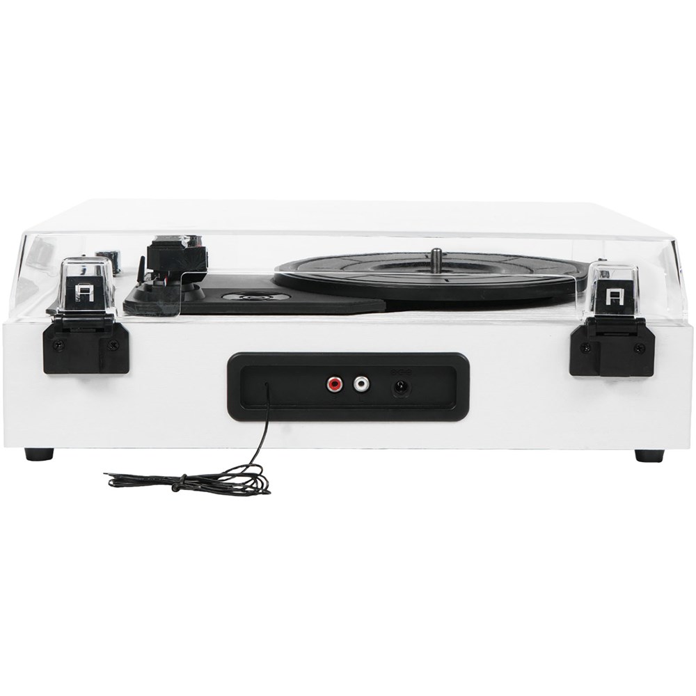 Plattenspieler, der Schallplatten abspielt und sie über USB und SD Karte in ein digitales Format umwandelt. Außerdem spielt er Musik über Bluetooth, USB, SD Karte und Radio ab. Der Plattenspieler ist mit 2 leistungsstarken Lautsprechern mit je 5W ausgestattet für eine hervorragende Klangqualität. RCA Audioausgang. Enthält einen Adapter für 45 U/min, um Schallplatten verschiedener Größen zu verwenden. Mit Staubschutzhülle, Holzmaserung und Stoffbezug.