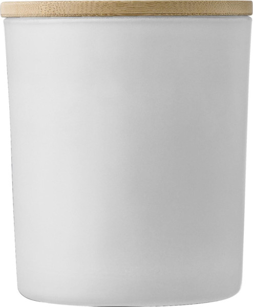 Glaskerze mit pflanzlichem Wachs und einem Deckel aus Bambus. Die Kerze enthält hauptsächlich... mehr