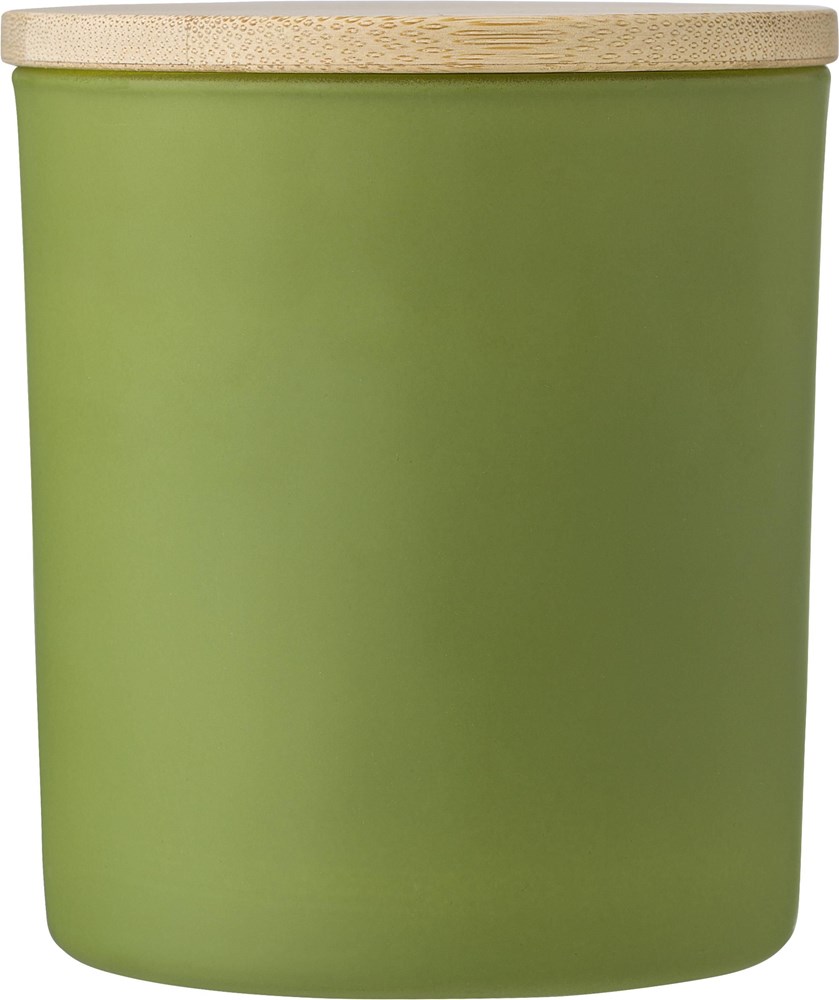 Glaskerze mit pflanzlichem Wachs und einem Deckel aus Bambus. Die Kerze enthält hauptsächlich... mehr