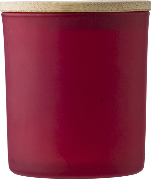 Glaskerze mit pflanzlichem Wachs und einem Deckel aus Bambus. Die Kerze enthält hauptsächlich... mehr