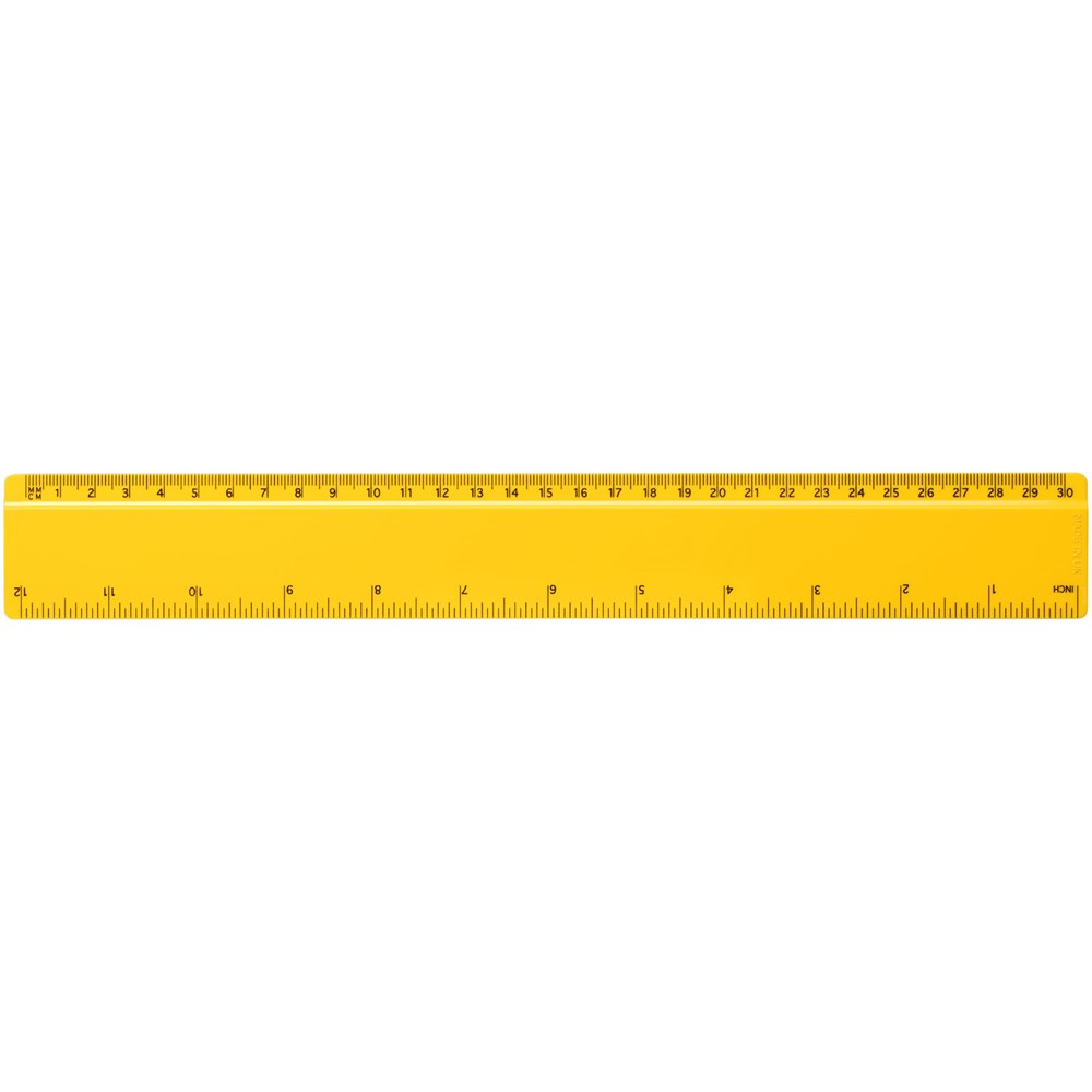 Stabiles Lineal aus recyceltem Kunststoff verfügbar mit Markierungen in Zoll und Zentimeter. mehr