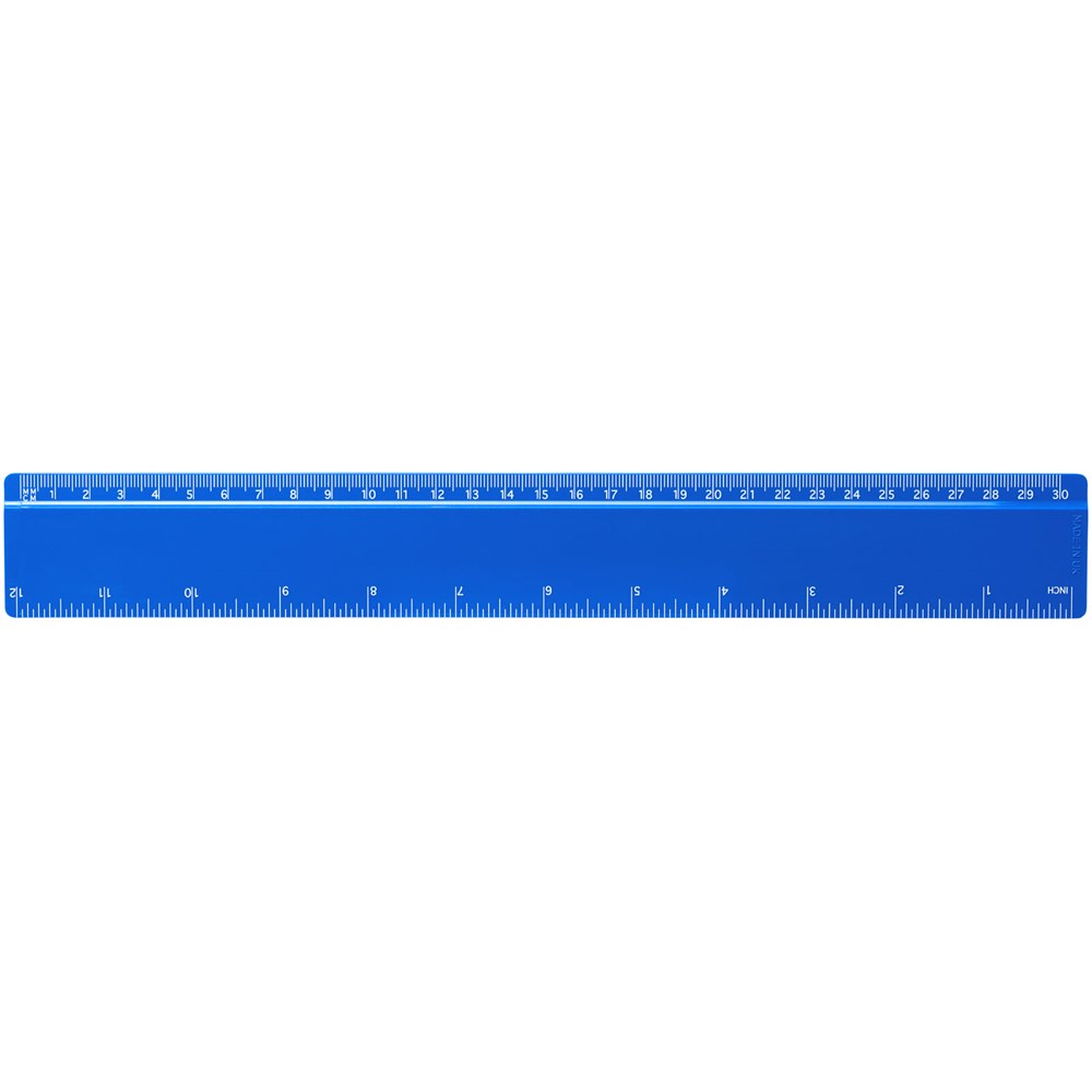 Stabiles Lineal aus recyceltem Kunststoff verfügbar mit Markierungen in Zoll und Zentimeter. mehr