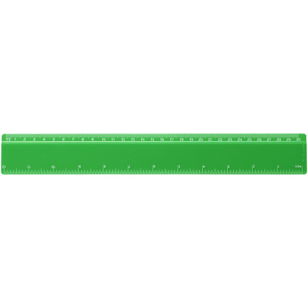 Stabiles Lineal aus recyceltem Kunststoff verfügbar mit Markierungen in Zoll und Zentimeter. mehr