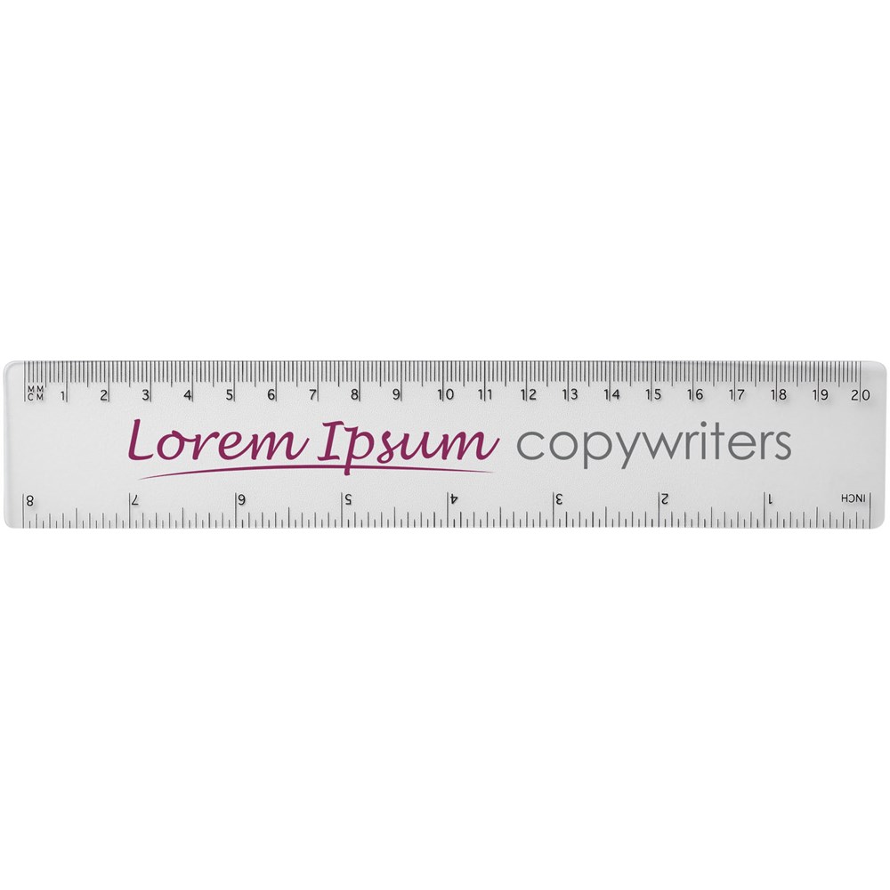 Flexibles, leichtes Kunststoff Lineal mit Markierungen in Zoll und Zentimeter. Bitte beachten Sie, dass die Linealmarkierungen zusammen mit Ihrer Druckvorlage aufgedruckt werden, unveredelte Lineale haben keine Markierungen und sind blank.