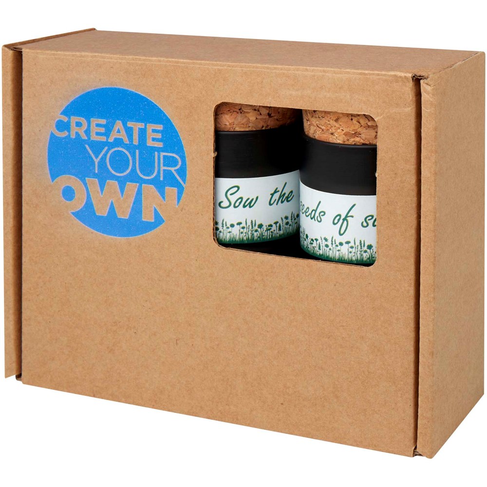 Dieses Schreibtisch-Garten-Set enthält drei Töpfe aus gebürstetem, recyceltem Aluminium. Es enthält eine innovative Samenkugel mit einer Kräutermischung (Schnittlauch, süßes Basilikum, Petersilie, Dill und süßer Majoran), die in 1 bis 2 Wochen keimt. Jede Packung umfasst einen Topf, einen Korkstopfen, eine Anbauanleitung und organische Erdtabletten. Wenn Ihre Pflanzen groß geworden sind, können Sie den Topf zum Weiterkultivieren, Lagern oder Recyceln wiederverwenden. Geliefert in einer Geschenkbox, die auch bedruckt werden kann. Hergestellt in Europa.
