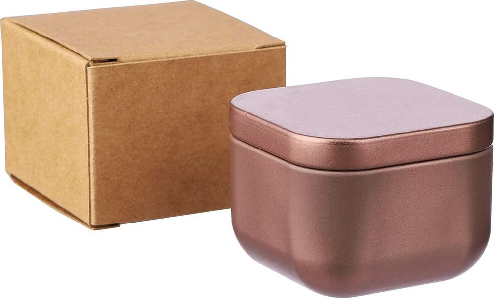 Metallkerze mit Vanilleduft in einem Metallgefäß mit Metalldeckel. Enthält 40 Gramm Wachs. Brenndauer ca. 10 Stunden. Einzeln verpackt in einer braunen Pappschachtel.
