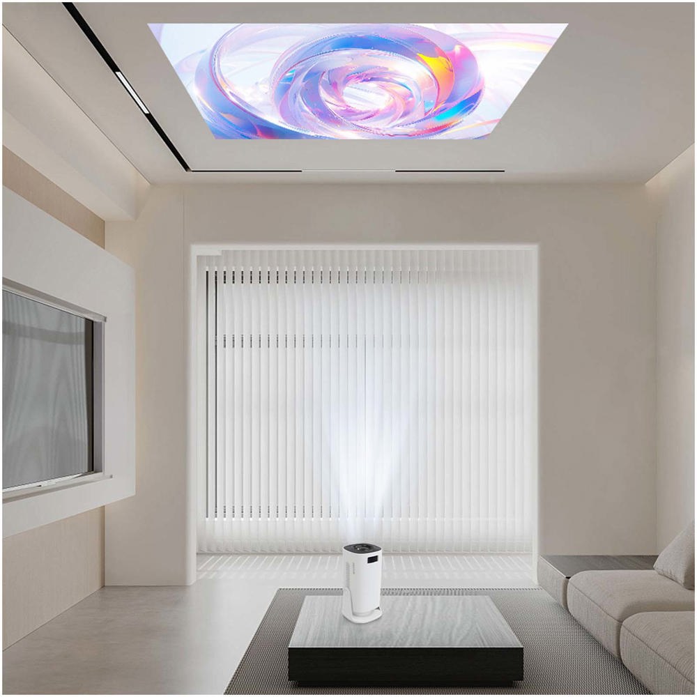 Erleben Sie Ihre Lieblingsserien und -filme wie nie zuvor mit dem Dalí Beamer. Mit HD 720P-Auflösung und 1080P Full HD-Kompatibilität projiziert er gestochen scharfe, klare Bilder bis zu einer Größe von 120 Zoll bei einem maximalen Entfernung von 4 Metern. Die automatische vertikale Trapezkorrektur sorgt dafür, dass das Bild immer perfekt ausgerichtet ist. Der eingebaute 3W Lautsprecher sorgt für klaren Sound und die 180 Grad Drehfunktion ermöglicht eine flexible Projektion aus verschiedenen Winkeln. Der Dalí Beamer verfügt über ein helles LED-Licht mit 4.800 Lumen (110 ANSI-Lumen weißes Licht) und ein Kontrastverhältnis von 500:1 für lebendige, detailreiche Bilder. Mit einer Lebensdauer von 30.000 Stunden ist er besonders langlebig. Er verfügt über HDMI- und USB-Eingänge für vielseitige Anschlussmöglichkeiten und unterstützt Video-, Audio- und Bildwiedergabe. Die zusätzlichen Funktionen „Skylight“ und „Umgebungslicht“ sorgen für eine verbesserte Betrachtungsatmosphäre, und die mitgelieferte Fernbedienung macht die Bedienung einfach und bequem.