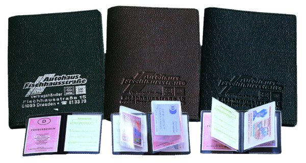 Solide Führerscheintasche aus wertigem Kunstleder mit 5 Klarsichtfächern, offenkantig. mehr