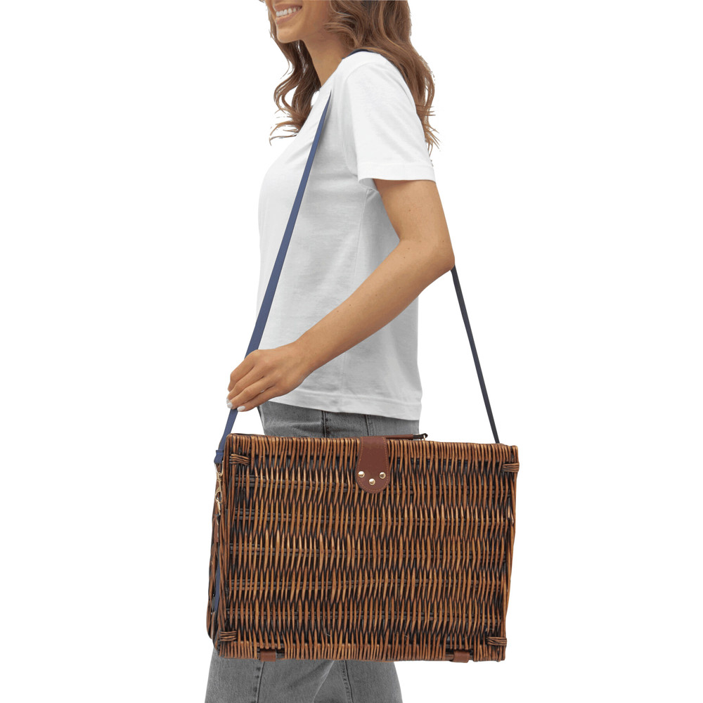 Picknickkorb CENTRAL PARK für 2 Personen: inkl. Edelstahl-Besteck, Porzellanteller, Sektgläser aus Glas, Isolierkanne mit Becher, Tischdecke, mit Schultergurt, Tragegriff und Drehverschluss