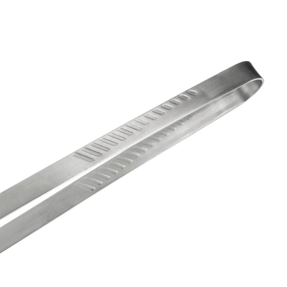 Die klassische gebogene Grillzange ist der praktische Helfer am Grill oder in der Küche. Durch die Einkerbungen am Griff und die Spannkraft ist eine optimale Handhabung garantiert. Die gewellten und innen strukturierten Enden der Zange sorgen für ein sicheres Halten des Grillguts. Aus mattem Edelstahl.
