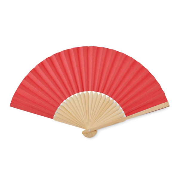 Fächer aus Bambus mit Papierbespannung. Bambus ist ein natürliches Produkt, es kann daher zu leichten Abweichungen in Farbe, Dekor und Maßen kommen.