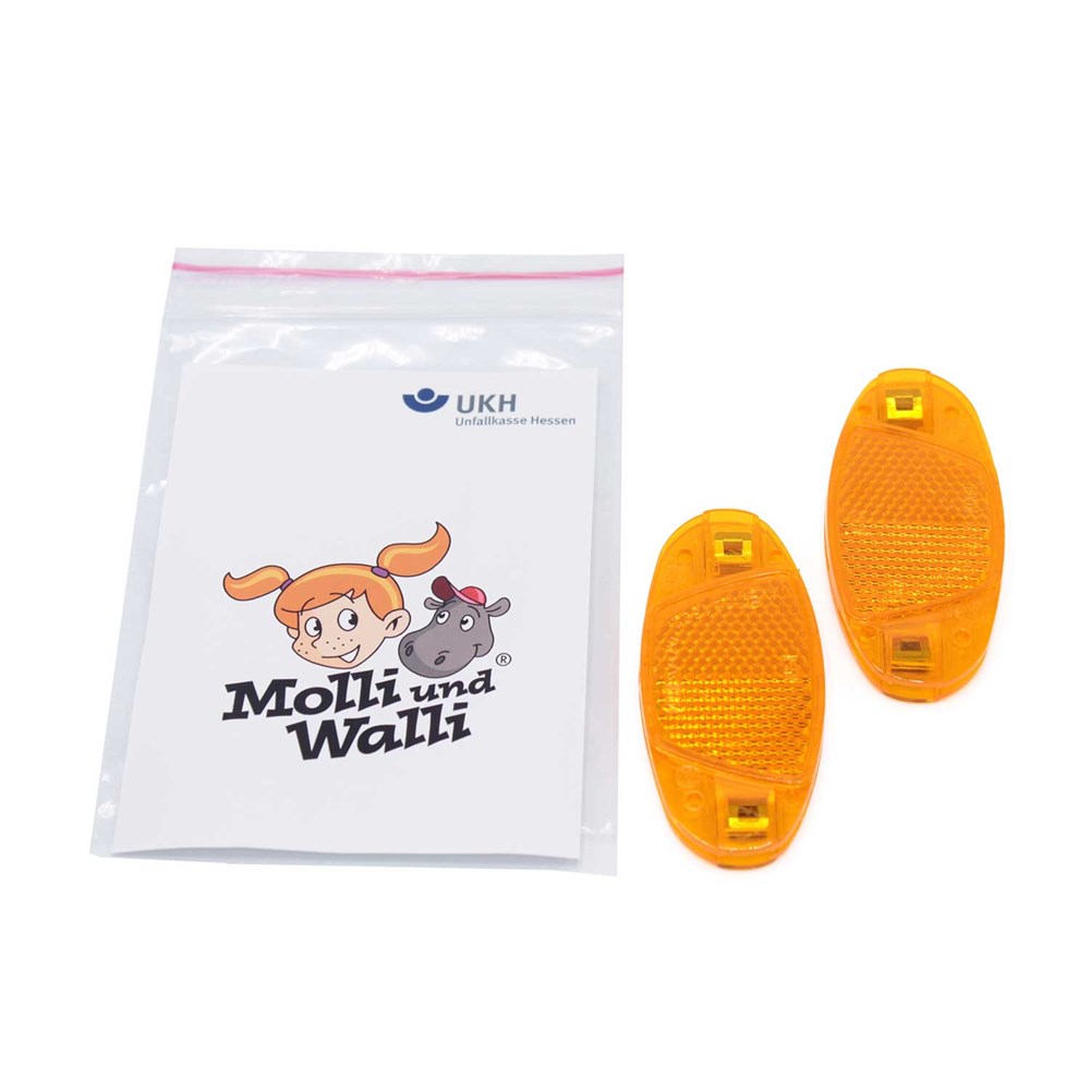 Fahrradreflektor in ovaler Form (STUD). Der Artikel ist durch die Federklammern für alle Speichenarten einsetzbar. Produziert nach dem deutschen Prüfzeichen der StVZO (Straßen-Verkehrs-Zulassungs-Ordnung). Jedes Sets besteht aus dem Speichenstrahler Stud und wird im wiederverschließbaren Polybeutel mit 4c bedrucktem Papiereinleger verpackt.
