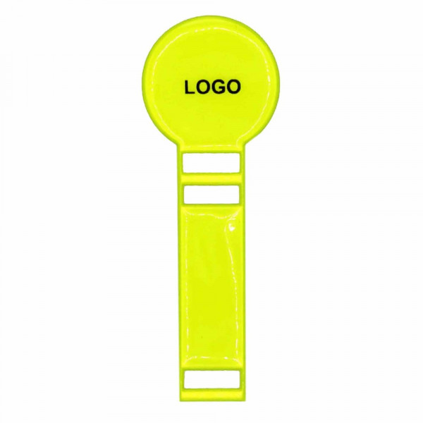 Mit Hilfe von drei Ösen kann der Reflektor am Schnürsenkel Ihrer Jogging-, Wander- oder Arbeitsschuhe fixiert werden: Ein echter Hingucker - SAFTEY FIRST!