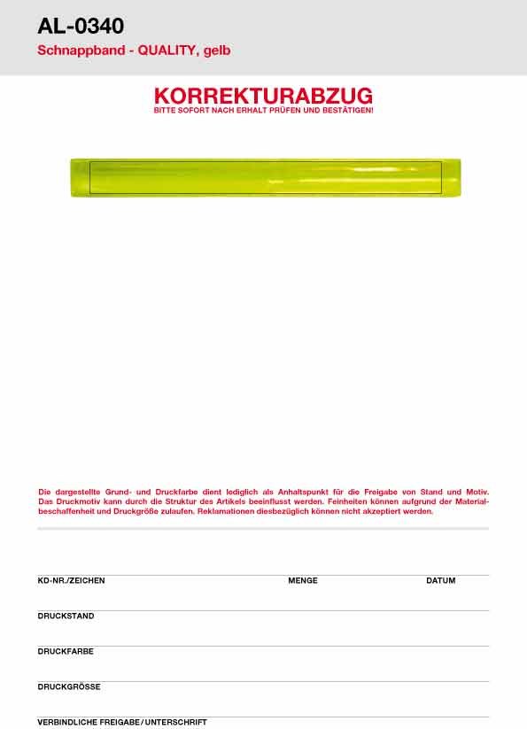 Unsere Schnappbänder QUALITY werden nach EN 17353 produziert. Die Glodian Folie in weiß oder gelb ist direkt oder unter der Folie bedruckbar. Rückseite mit schwarzem Velourstoff überzogen. Ein idealer Begleiter in der Dunkelheit. Vielseitig einsetzbar: in der Freizeit, beim Joggen oder beim Spazierengehen.
