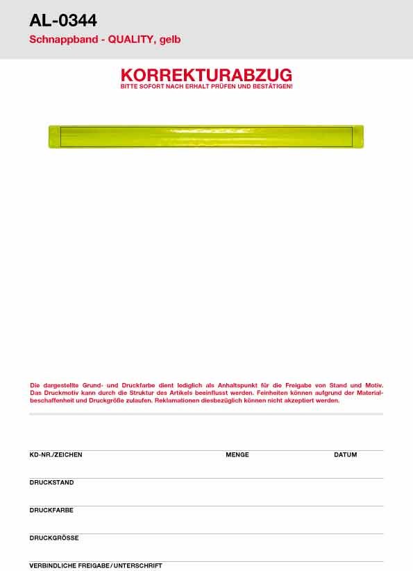 Unsere Schnappbänder QUALITY werden nach EN 17353 produziert. Die Glodian Folie in weiß oder gelb ist direkt oder unter der Folie bedruckbar. Rückseite mit schwarzem Velourstoff überzogen. Ein idealer Begleiter in der Dunkelheit. Vielseitig einsetzbar: in der Freizeit, beim Joggen oder beim Spazierengehen.