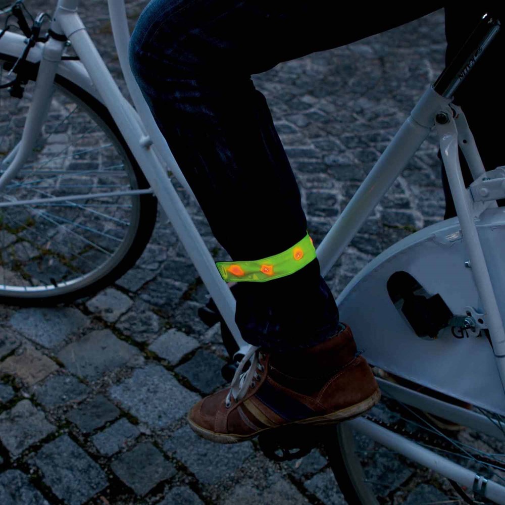 Unser Reflektionsband PROMOTION STAR ist mit vier LED`s ausgestattet. Zwei verschiedene Leucht-Funktionen sind möglich: Blinklicht oder Dauerlicht. Durch den Klettverschluss und das schwarze elastische Gummiband ist dieser Artikel auch in der Größe variabel