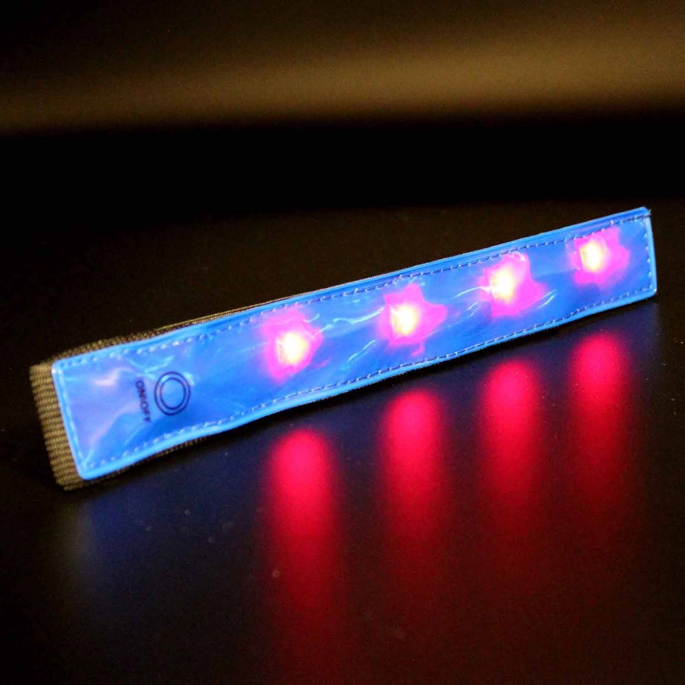 Unser Reflektionsband PROMOTION STAR ist mit vier LED`s ausgestattet. Zwei verschiedene Leucht-Funktionen sind möglich: Blinklicht oder Dauerlicht. Durch den Klettverschluss und das schwarze elastische Gummiband ist dieser Artikel auch in der Größe variabel