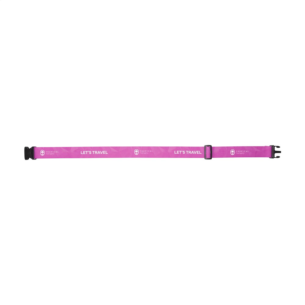 Gepäckgurt aus robustem Polyester mit Klickverschluss aus Kunststoff. Inklusive personalisiertem Vollfarbdruck auf beiden Seiten. Auch möglich mit unterschiedlichen Designs auf Vorder- und Rückseite. Einstellbar auf mindestens 130 cm und maximal 190 cm. Der breite Riemen sorgt für zusätzliche Stabilität und Wiedererkennung Ihres Koffers.