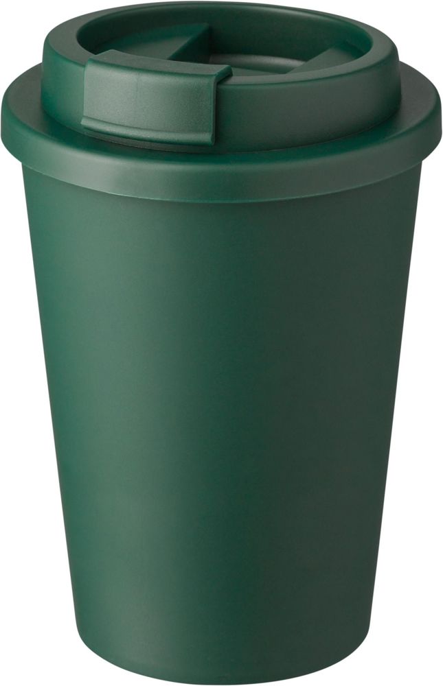 PP-To-go-Becher (350 ml) mit Schraubdeckel. Mit verschließbarer Trinköffnung. Er ist sowohl für heiße als auch für kalte Getränke geeignet.