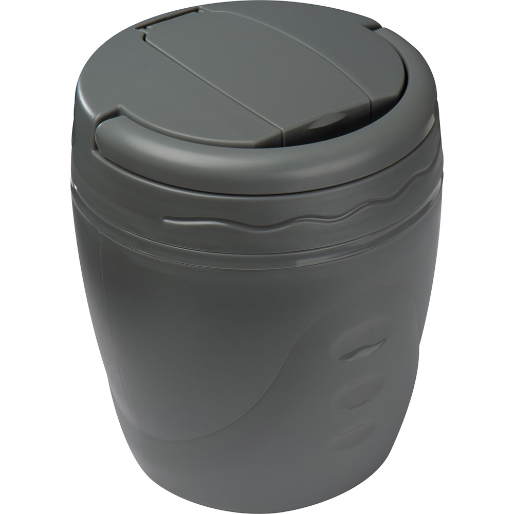 Isolierender Henkelmann mit 1.000ml Gesamt-Fassungsvermögen (bei eingesetztem Zusatzfach Fassungvermögen ca. 500 ml) mit herausnehmbarem Zusatzfach (350 ml), Deckel und klappbarem Löffel mit Gabelspitzen. Ihre Werbung drucken wir auf den Deckel.