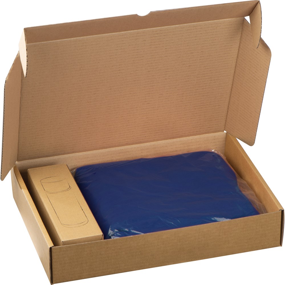 Geschenkset bestehend aus Thermoskanne (Edelstahl) mit Becher (Fassungsvolumen 500ml) und einer 2in1 Fleecedecke (180 x 120 cm) die sich zusammenfalten und mit dem Reißverschluss zum Kissen schließen lässt. Ihre Werbung gravieren wir auf die Thermoskanne.