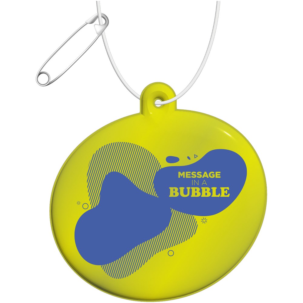 Befestigen Sie diesen reflektierenden Anhänger an Kleidung, Taschen oder anderen Gegenständen im Freien, um die Sichtbarkeit in der Dunkelheit zu erhöhen. Durch die Verwendung dieser zertifizierten Anhänger machen Sie die Verkehrssicherheit zu einem Merkmal Ihrer Marke. Die Anhänger werden mit einer weißen Schnur und einer Sicherheitsnadel zur einfachen Befestigung geliefert. Erhältlich in verschiedenen Formen und Größen und in weißer oder gelber Farbe. Mit einer fluoreszierenden RFX™ Soft-Reflexionsfolie aus phthalatfreiem PVC oder der nachhaltigeren Option TPU. Die Materialien wurden gemäß der SVHC (Substances of Very High Concern) REACH-Kandidatenliste getestet und sind frei von Phthalaten. Die Anhänger sind CE-geprüft und zugelassen gemäß EN 17353 Typ B 1. Jeder Artikel wird mit einer 10 cm langen Schnur und einer Nadel geliefert, um ihn einfach an einer Tasche, Jacke usw. zu befestigen. Zusammen mit einem Informationsblatt verpackt in einem Glassine-Beutel, einem nachhaltigen Material, das aus Holzzellstoff hergestellt wird. Hergestellt in Europa.