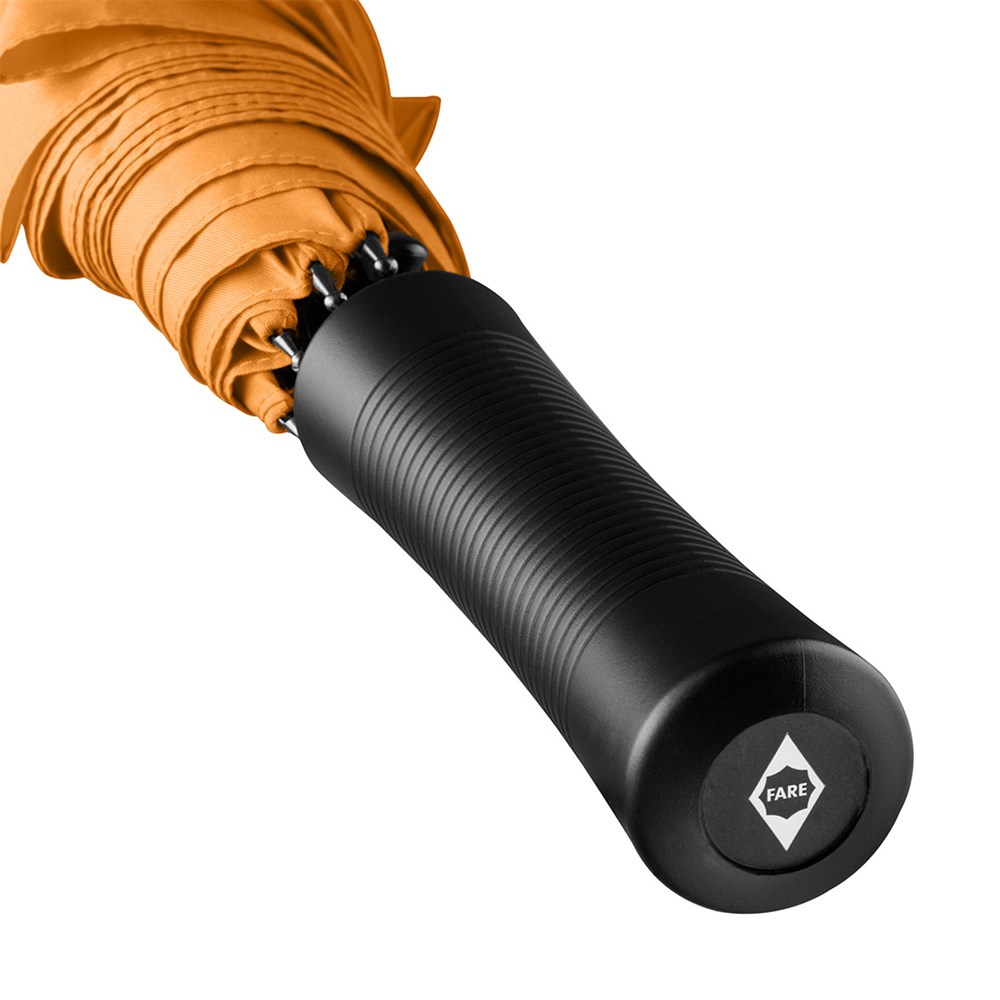 Preislich attraktiver Automatik-Stockschirm mit Windproof-System Komfortable Automatik-Funktion zum schnellen Öffnen, Windproof-System für höhere Gestell-Flexibilität und bessere Windsicherheit, flexible Fiberglasschienen, matt-schwarzer gerader Kunststoffgriff mit Werbeanbringungsmöglichkeit, höherer Korrosionsschutz durch schwarze Galvanisierung des Stahlstocks