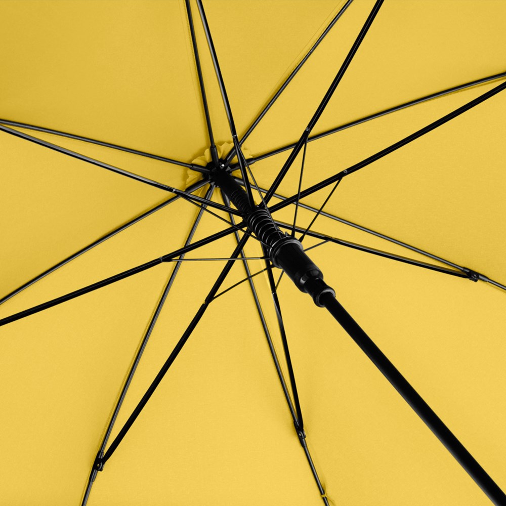 Preislich attraktiver Automatik-Stockschirm mit Windproof-System Komfortable Automatik-Funktion zum schnellen Öffnen, Windproof-System für höhere Gestell-Flexibilität und bessere Windsicherheit, flexible Fiberglasschienen, matt-schwarzer Kunststoff Rundhakengriff, höherer Korrosionsschutz durch schwarze Galvanisierung des Stahlstocks. Auch als Gästeschirm (Art. 2359) erhältlich.