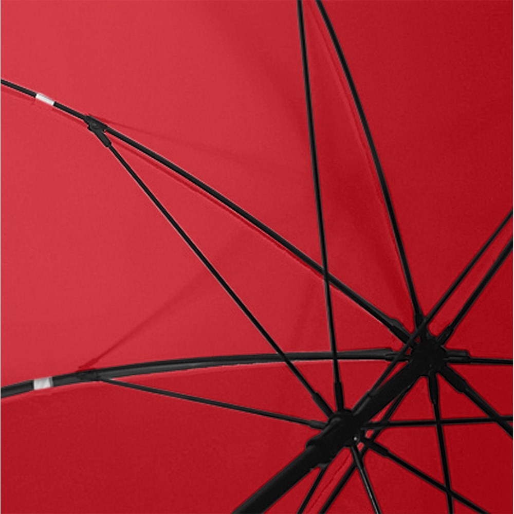 Stabiler Handöffner-Gästeschirm für zwei Personen Hochwertiges Windproof-PLUS-System für eine maximale Gestell-Flexibilität bei stärkeren Windböen, flexible Fiberglasschienen, stabiler Fiberglasstock, gerader Griff mit Werbeanbringungsmöglichkeit, Kunststoff-Glocke, gastfreundlicher großer Durchmesser