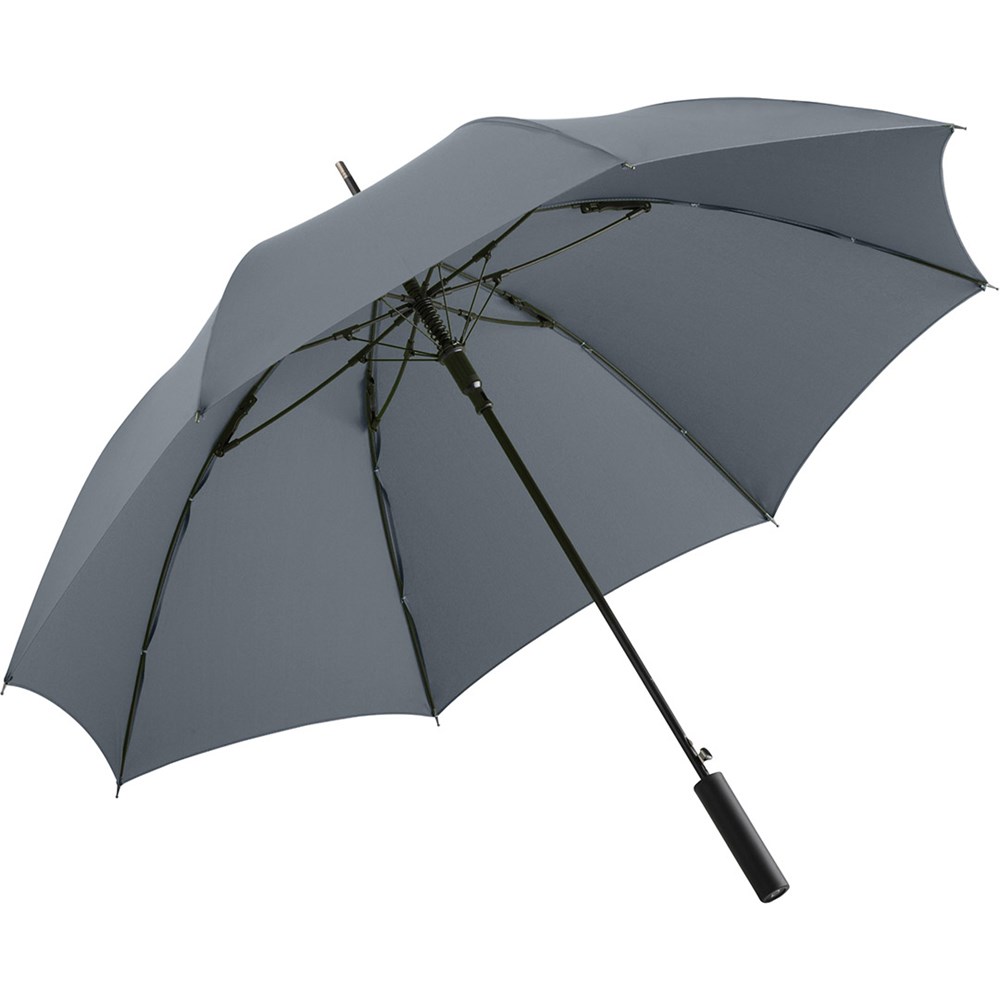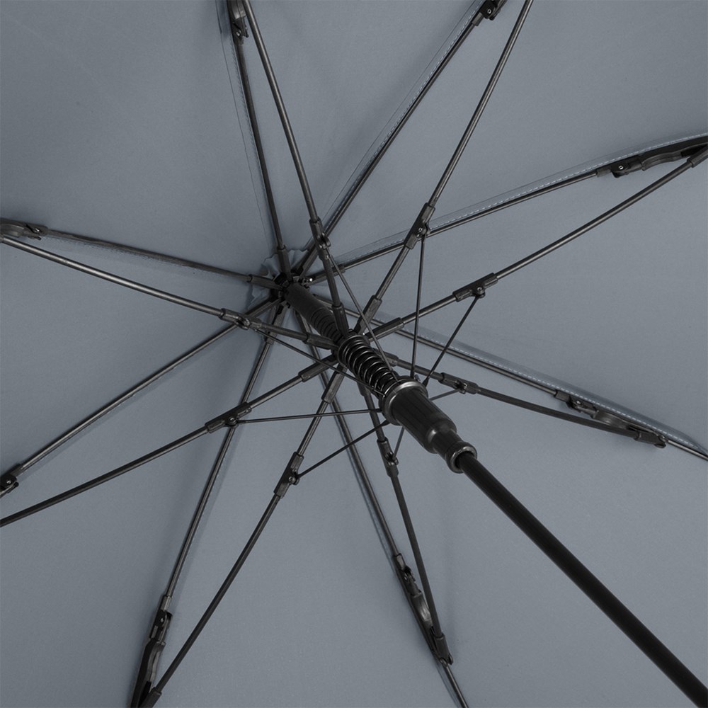 Preislich attraktiver Automatik-Stockschirm mit doppelter Werbeanbringungsmöglichkeit am Griff Komfortable Automatik-Funktion zum schnellen Öffnen, hochwertiges Windproof-PLUS-System für eine maximale Gestell-Flexibilität bei stärkeren Windböen, flexible Fiberglasschienen, gerader Griff mit doppelter Werbeanbringungsmöglichkeit, höherer Korrosionsschutz durch schwarze Galvanisierung des Stahlstocks