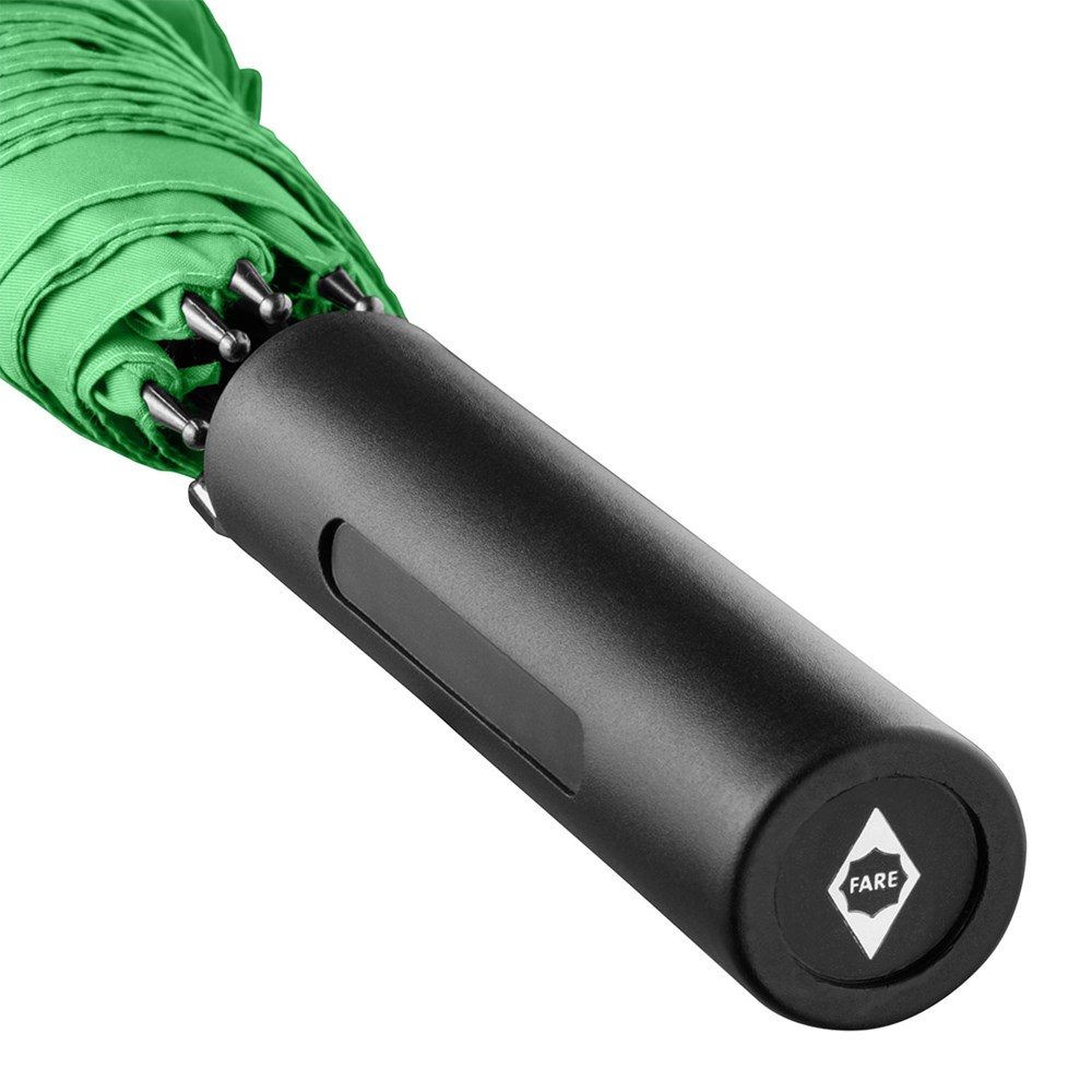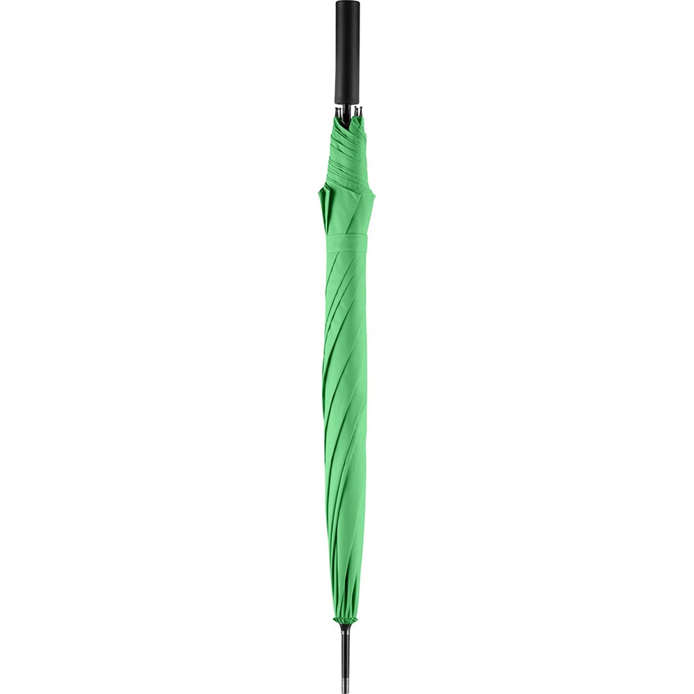 Preislich attraktiver Automatik-Stockschirm mit doppelter Werbeanbringungsmöglichkeit am Griff Komfortable Automatik-Funktion zum schnellen Öffnen, hochwertiges Windproof-PLUS-System für eine maximale Gestell-Flexibilität bei stärkeren Windböen, flexible Fiberglasschienen, gerader Griff mit doppelter Werbeanbringungsmöglichkeit, höherer Korrosionsschutz durch schwarze Galvanisierung des Stahlstocks