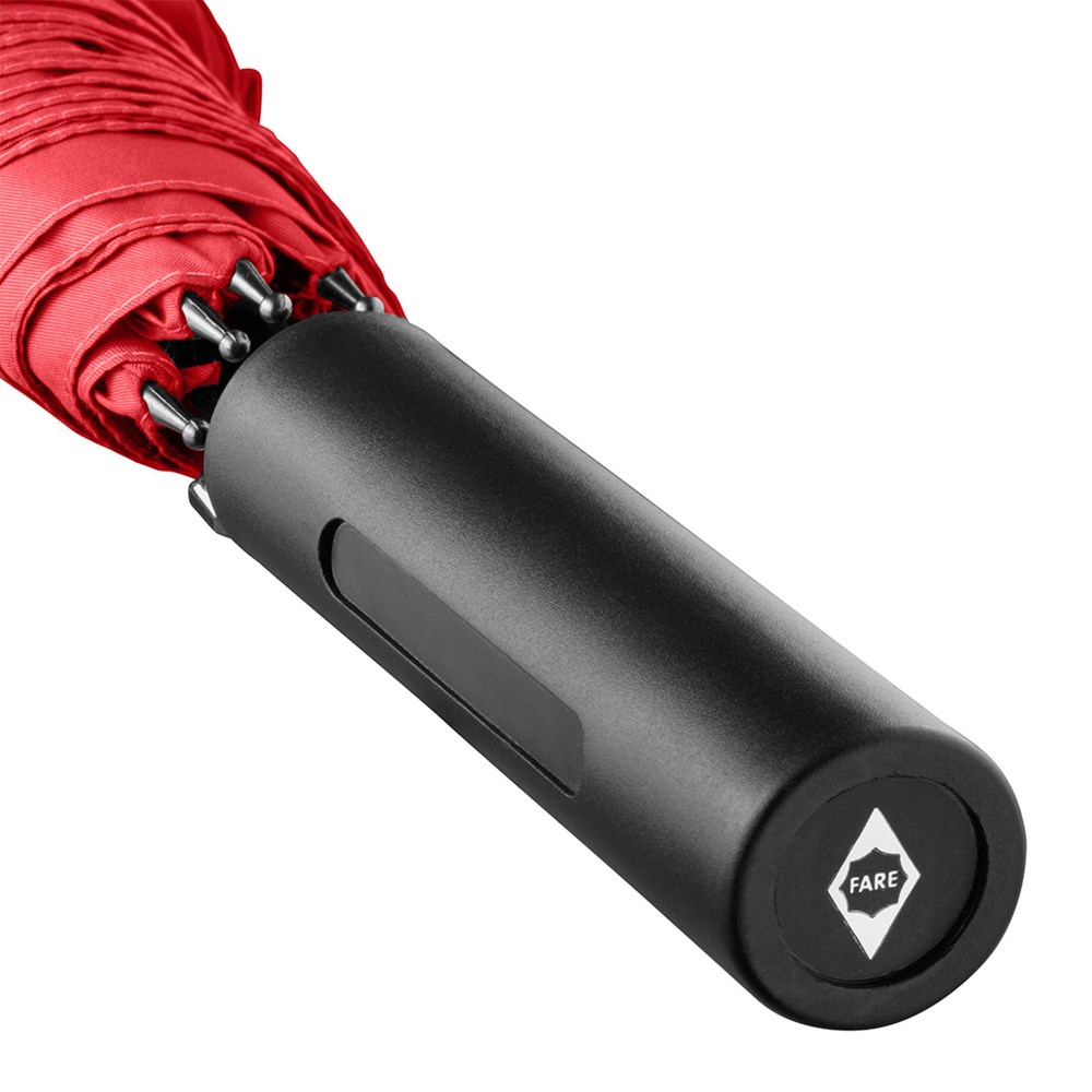 Preislich attraktiver Automatik-Stockschirm mit doppelter Werbeanbringungsmöglichkeit am Griff Komfortable Automatik-Funktion zum schnellen Öffnen, hochwertiges Windproof-PLUS-System für eine maximale Gestell-Flexibilität bei stärkeren Windböen, flexible Fiberglasschienen, gerader Griff mit doppelter Werbeanbringungsmöglichkeit, höherer Korrosionsschutz durch schwarze Galvanisierung des Stahlstocks