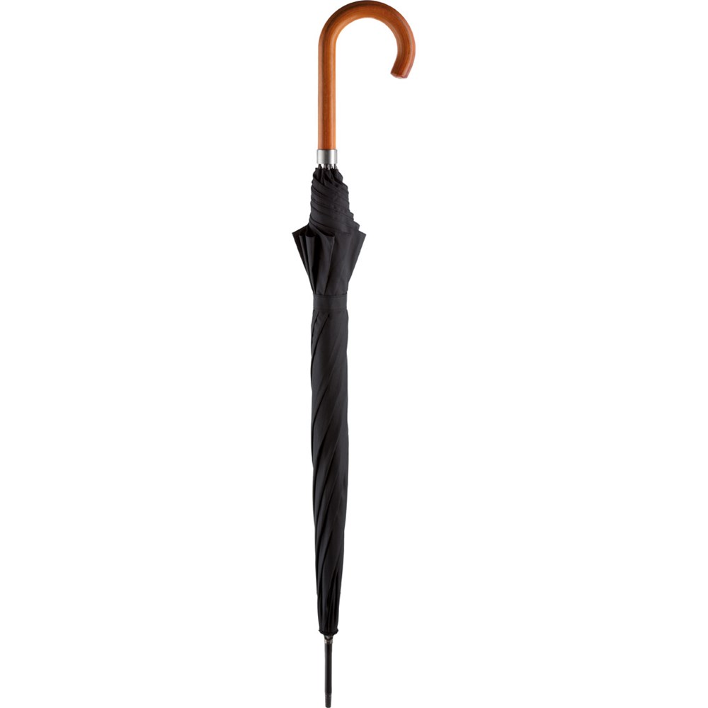 Preislich attraktiver Automatik-Stockschirm mit geflammtem Rundhakengriff aus Echtholz Komfortable Automatik-Funktion zum schnellen Öffnen, Windproof-System für höhere Gestell-Flexibilität und bessere Windsicherheit, flexible Fiberglasschienen, Griff mit laserfähigem Griffring, höherer Korrosionsschutz durch schwarze Galvanisierung des Stahlstocks