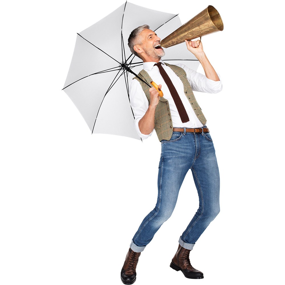 Preislich attraktiver Automatik-Stockschirm mit geflammtem Rundhakengriff aus Echtholz Komfortable Automatik-Funktion zum schnellen Öffnen, Windproof-System für höhere Gestell-Flexibilität und bessere Windsicherheit, flexible Fiberglasschienen, Griff mit laserfähigem Griffring, höherer Korrosionsschutz durch schwarze Galvanisierung des Stahlstocks
