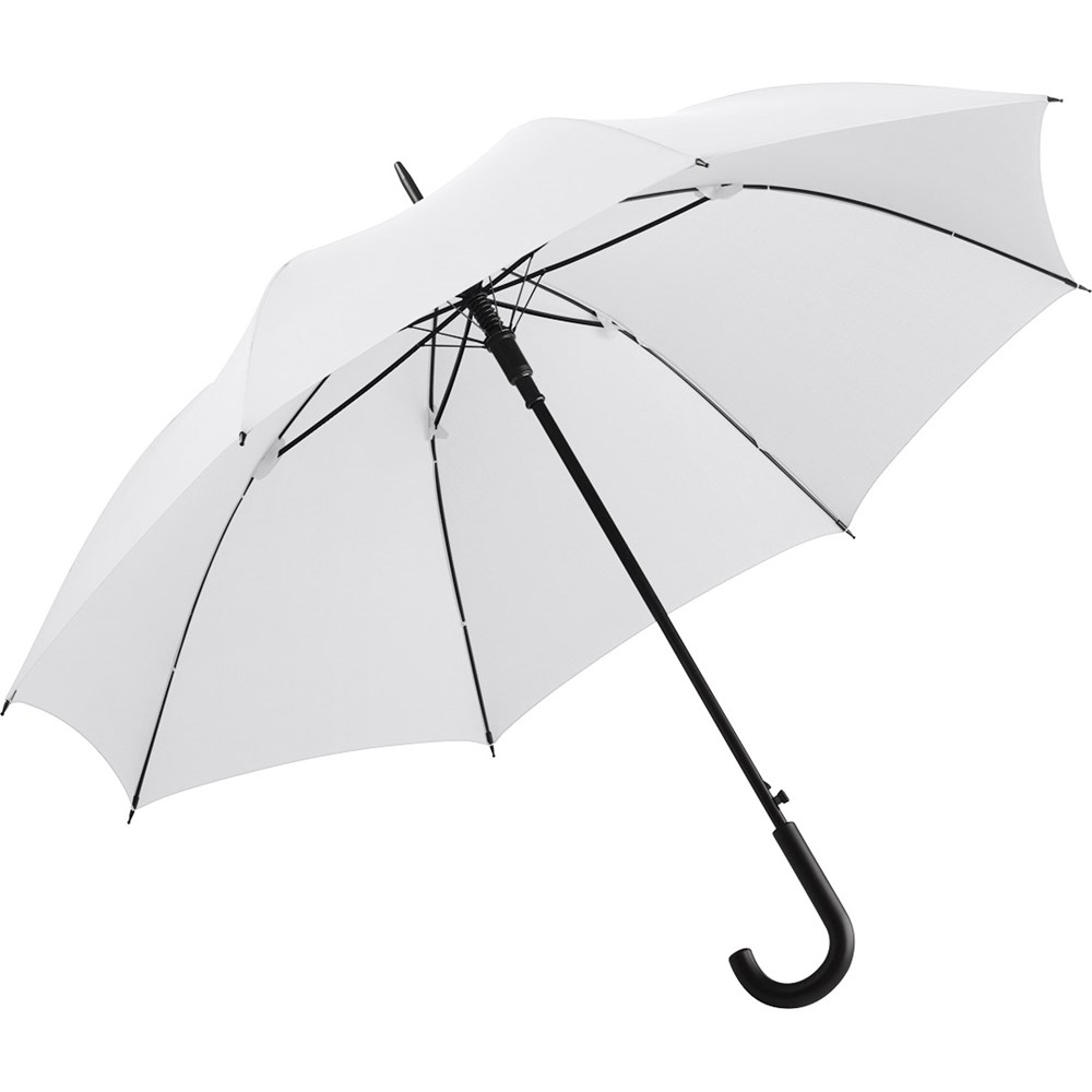 Preislich attraktiver Gästeschirm für zwei Personen mit Windproof-System Komfortable Automatik-Funktion zum schnellen Öffnen, Windproof-System für höhere Gestell-Flexibilität und bessere Windsicherheit, flexible Fiberglasschienen, matt-schwarzer Kunststoff Rundhakengriff, höherer Korrosionsschutz durch schwarze Galvanisierung des Stahlstocks. Auch als Stockschirm (Art. 1104) erhältlich.