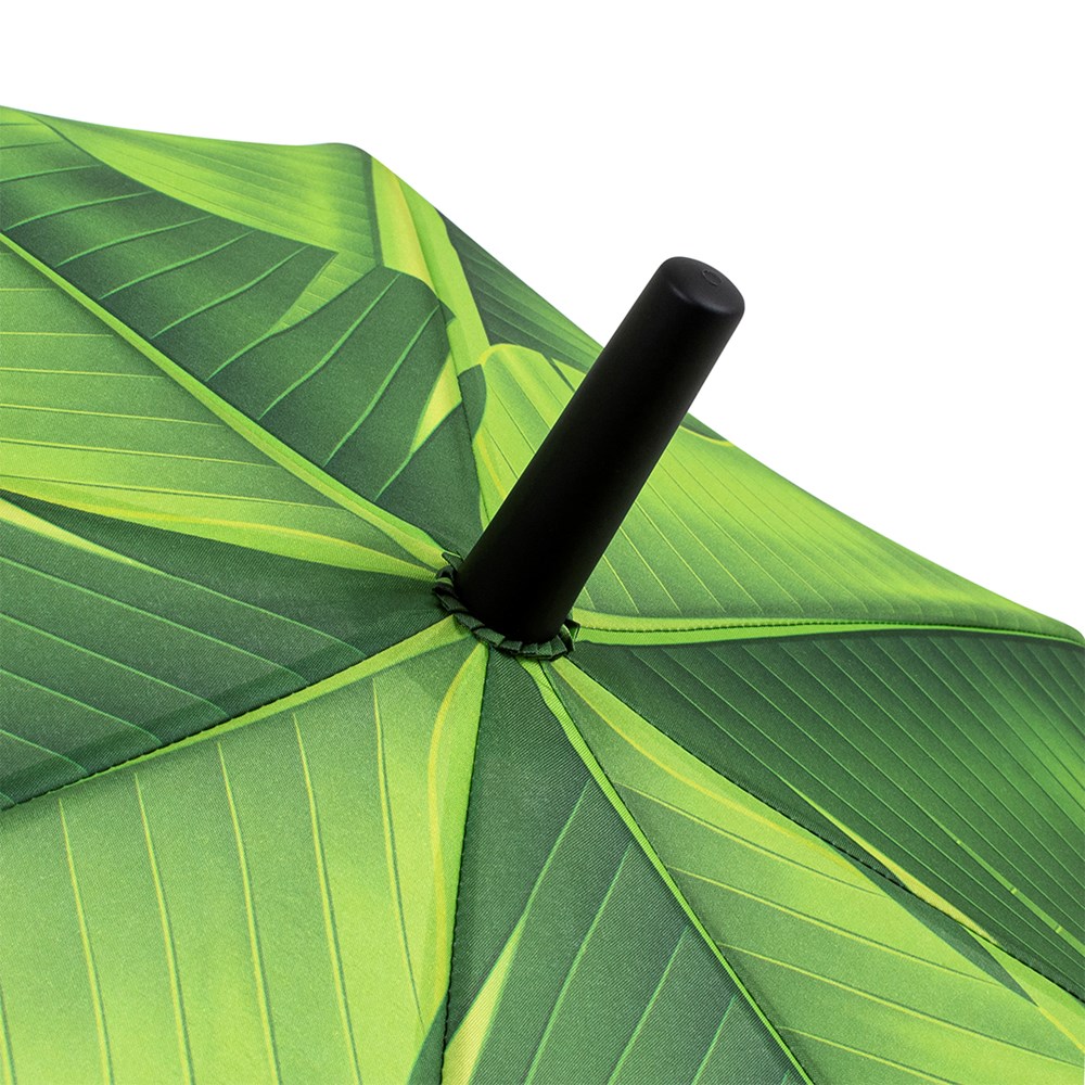Ausgefallener Automatik-Stockschirm mit Motiv-Außendruck und Kontursaum Komfortable Automatik-Funktion zum schnellen Öffnen, hochwertiges Windproof-PLUS-System für eine maximale Gestell-Flexibilität bei stärkeren Windböen, flexible Fiberglasschienen, stabiler Stahlstock, außen vollflächig bedruckter Bezug mit schwarzem Kontursaum, Soft-Feel Rundhakengriff mit Werbeanbringungsmöglichkeit, höherer Korrosionsschutz durch schwarze Galvanisierung des Stahlstocks