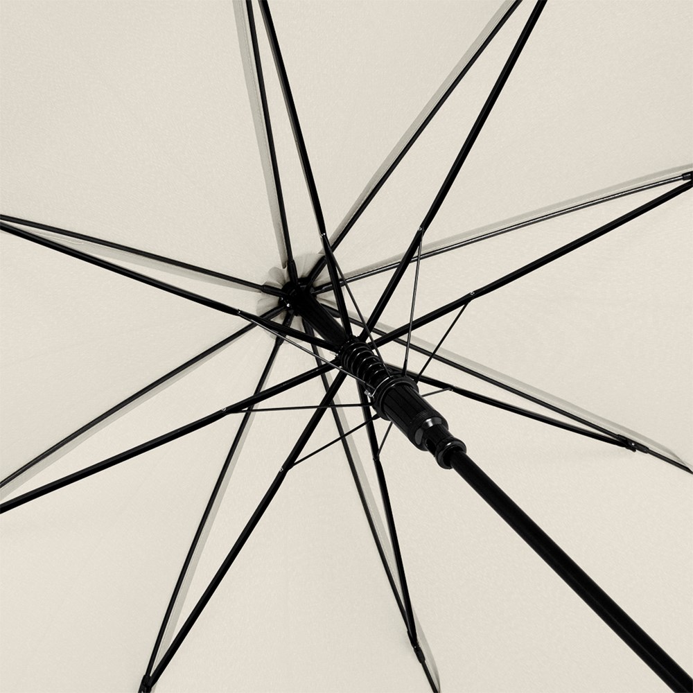 Preislich attraktiver nachhaltiger Stockschirm mit Bezug aus recycelten Kunststoffen Komfortable Automatik-Funktion zum schnellen Öffnen, Windproof-System für höhere Gestell-Flexibilität und bessere Windsicherheit, flexible Fiberglasschienen, Polyester-Pongee Bezugsmaterial aus recycelten Kunststoffen, farbabhängig auch mit waterSAVE®-Bezugmaterial und mit waterSAVE® Label auf dem Schließband erhältlich, Echtholzspitzen, Rundhakengriff aus Echtholz, höherer Korrosionsschutz durch schwarze Galvanisierung des Stahlstocks