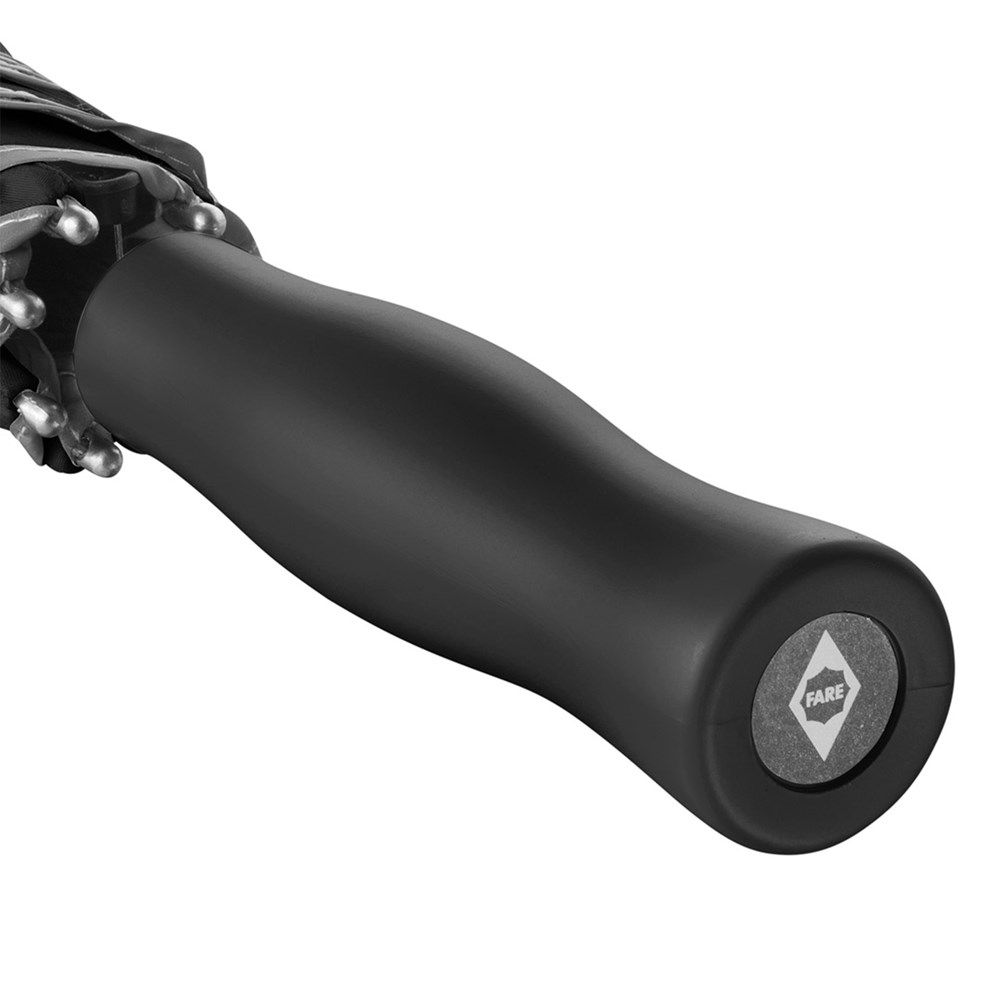 Markanter Automatik-Stockschirm mit modisch reflektierender Paspelierung Komfortable Automatik-Funktion zum schnellen Öffnen, hochwertiges Windproof-PLUS-System für eine maximale Gestell-Flexibilität bei stärkeren Windböen, stabiler Fiberglasstock, flexible Fiberglasschienen, Bezug mit modischer Reflexpaspel in Silber, handsympatischer Soft-Touch-Griff mit Werbeanbringungsmöglichkeit, Soft-Touch-Top
