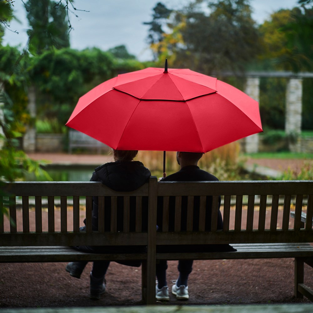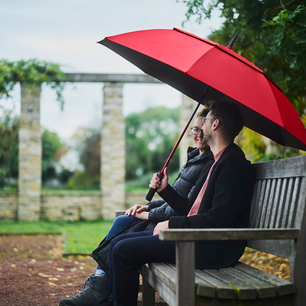 Exklusiver Automatik-Gästeschirm für zwei Personen mit Tropfenmotiv auf dem Fiberglasstock... mehr