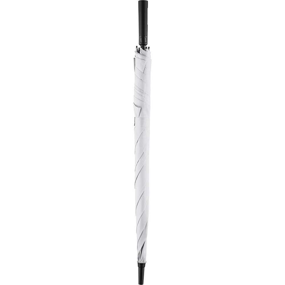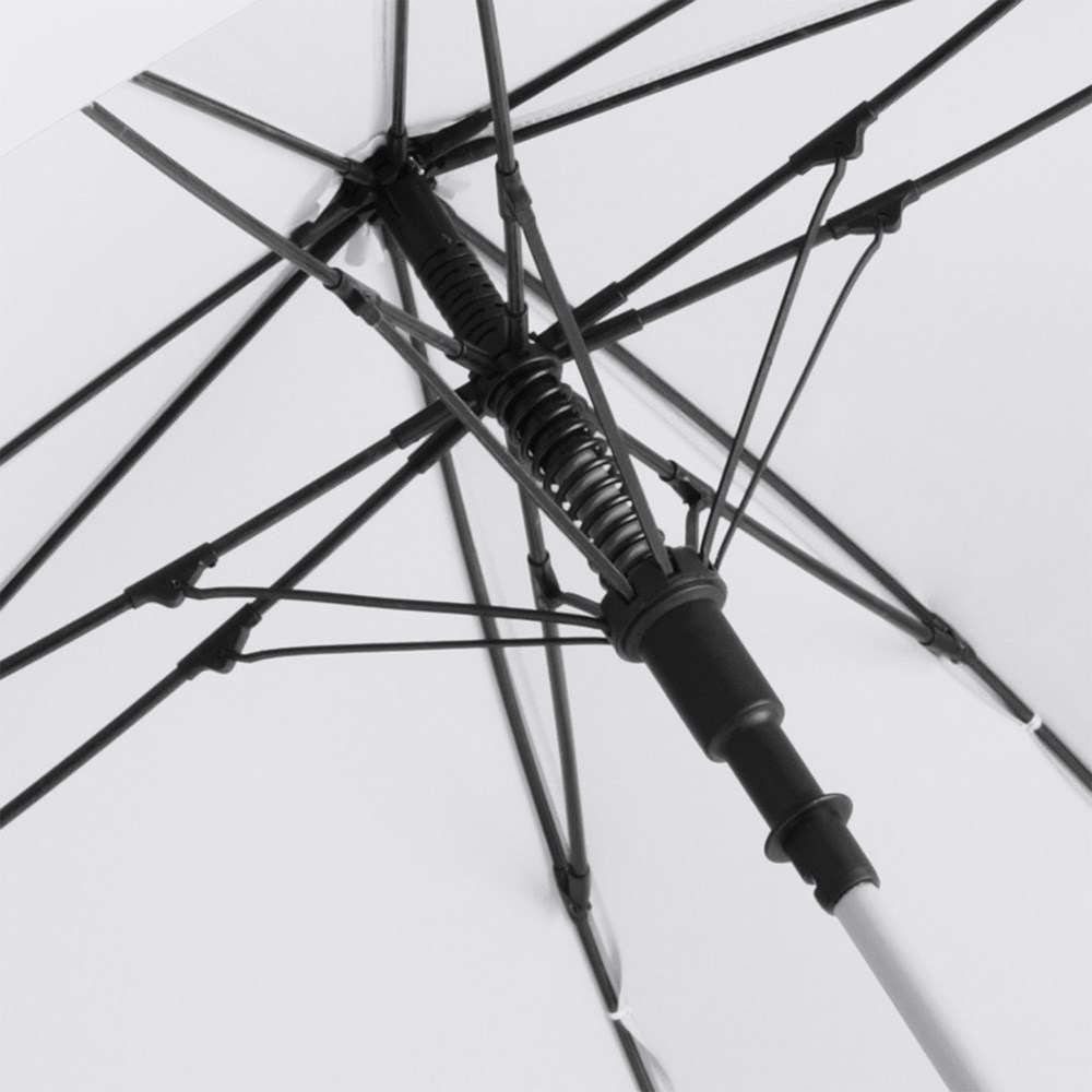 Quadratischer Gästeschirm für zwei Personen Komfortable Automatik-Funktion zum schnellen Öffnen, hochwertiges Windproof-PLUS-System für eine maximale Gestell-Flexibilität bei stärkeren Windböen, flexible Fiberglasschienen, farbige Ummantelung des Stahlstocks, gerader Soft-Touch-Griff mit integrierter Auslösetaste und doppelter Werbeanbringungsmöglichkeit, gastfreundlicher großer Durchmesser