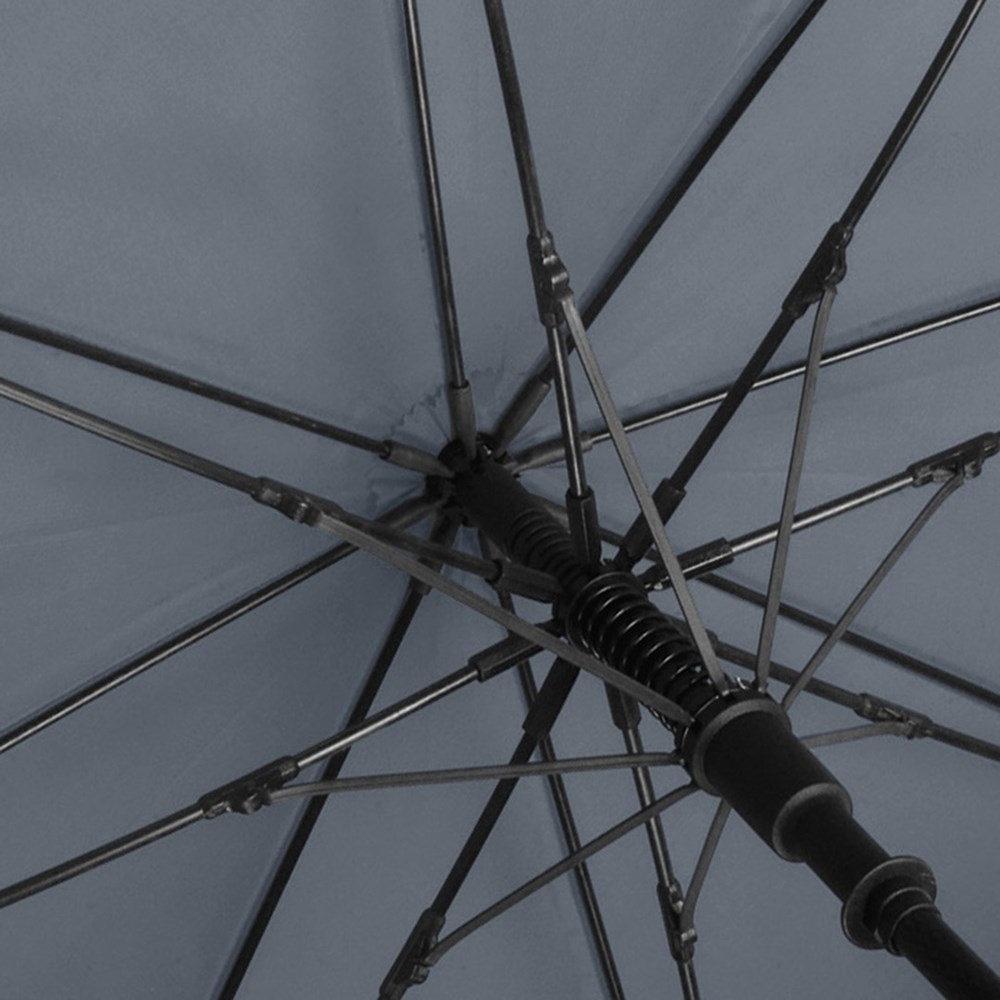 Äußerst stabiler Automatik-Gästeschirm für zwei Personen mit riesigem Durchmesser Komfortable Automatik-Funktion zum schnellen Öffnen, hochwertiges Windproof-PLUS-System für eine maximale Gestell-Flexibilität bei stärkeren Windböen, stabiler Fiberglasstock, flexible Fiberglasschienen, gerader Softgriff mit schmaler Auslösetaste, gastfreundlicher Durchmesser