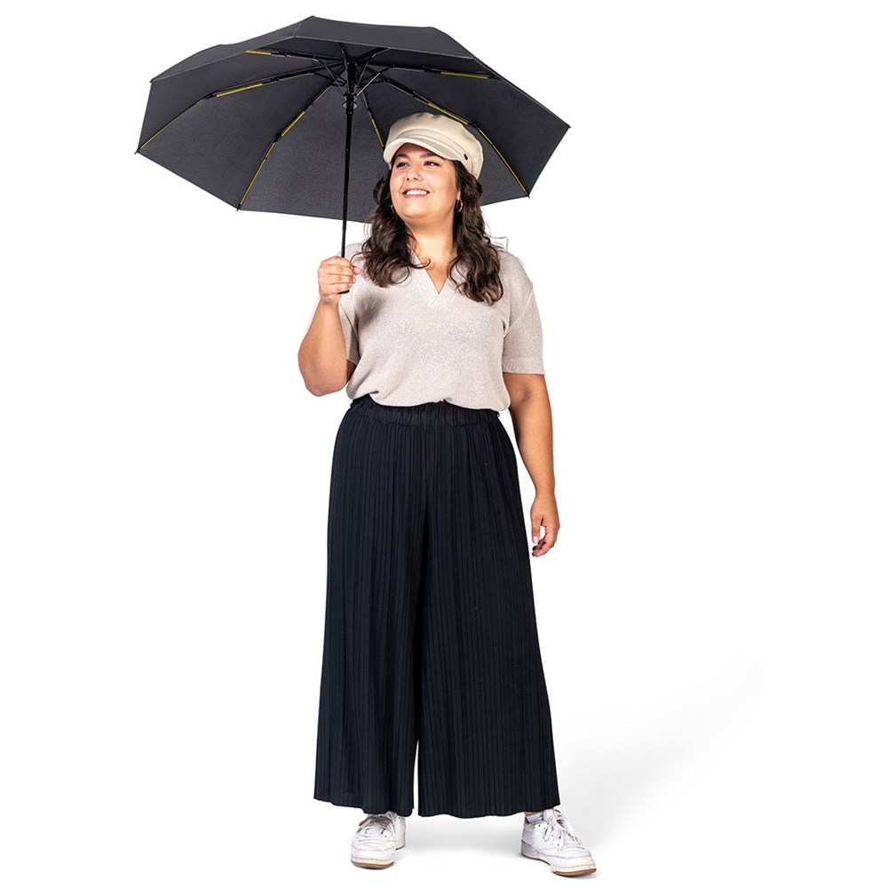 | Material: | Bezug: 100% Polyester-Pongee (recycelt & waterSAVE®) Griff: Kunststoff Stock: Stahl |