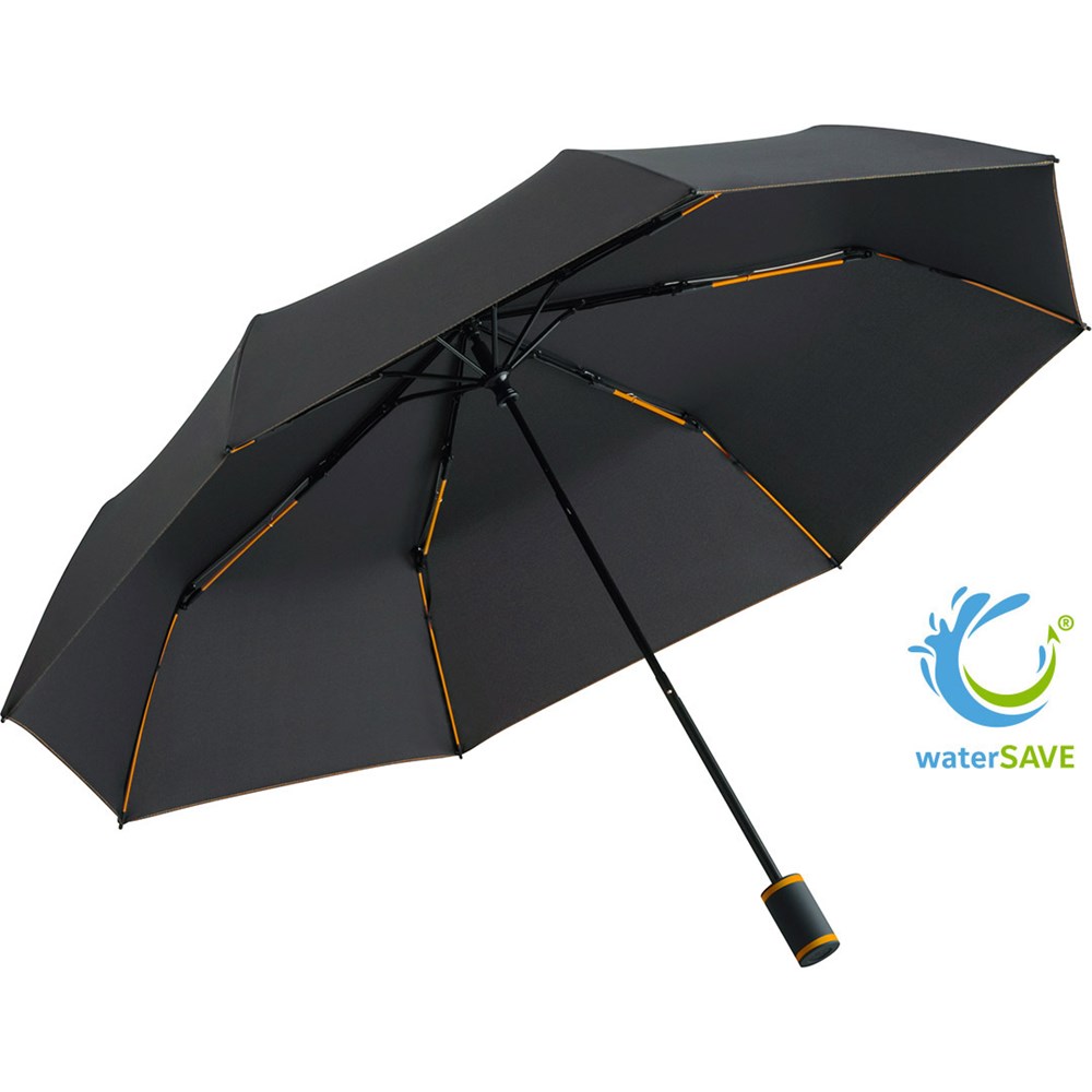| Material: | Bezug: 100% Polyester-Pongee (recycelt & waterSAVE®) Griff: Kunststoff Stock: Stahl |