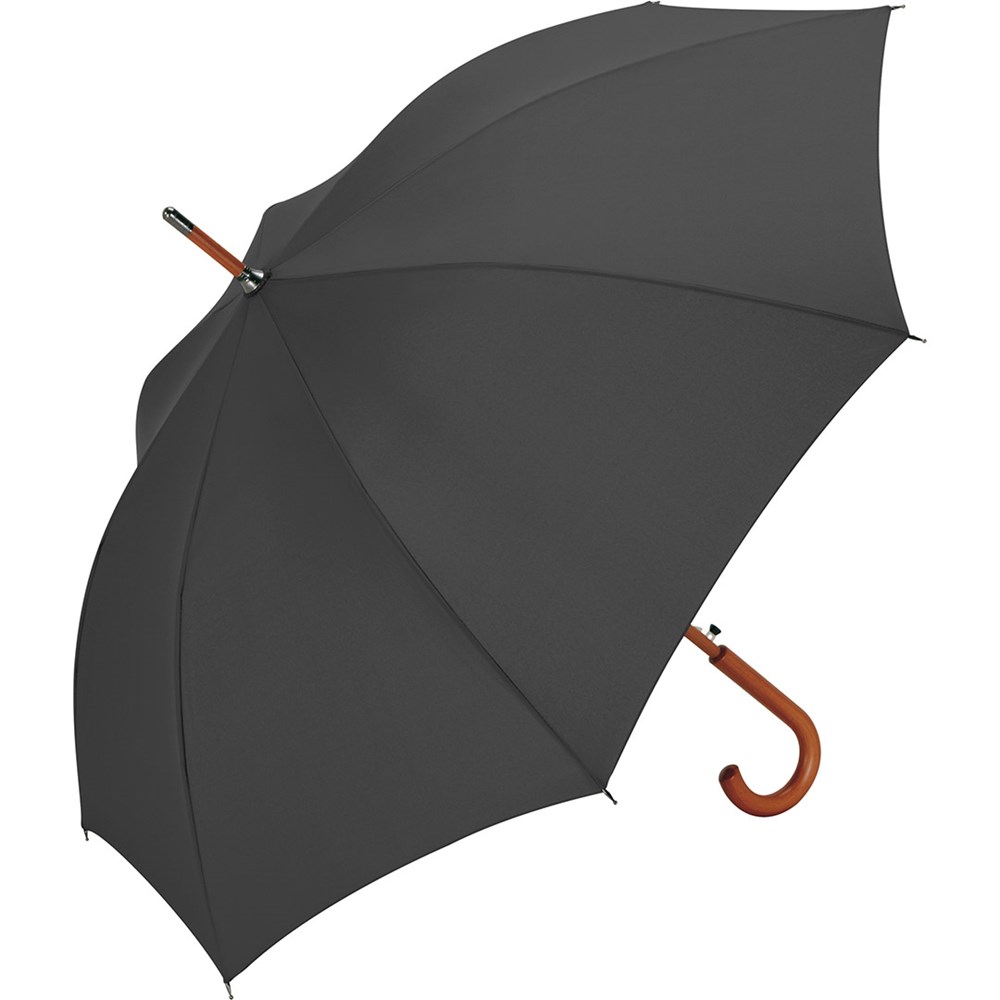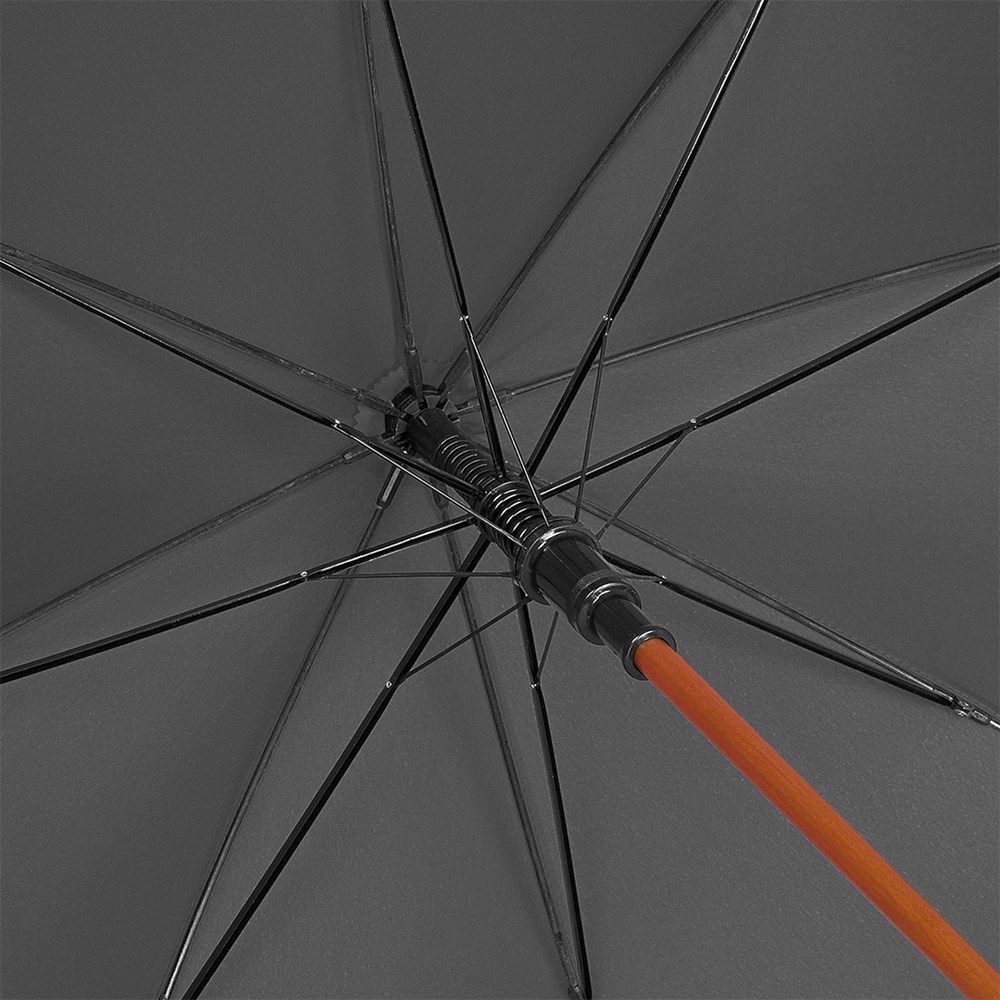 Automatik-Stockschirm mit Echtholzstock und Echtholzgriff Komfortable Automatik-Funktion zum schnellen Öffnen, Windproof-System für höhere Gestell-Flexibilität und bessere Windsicherheit, flexible Fiberglasschienen, massiver Echtholzstock, Rundhakengriff und Top aus Echtholz