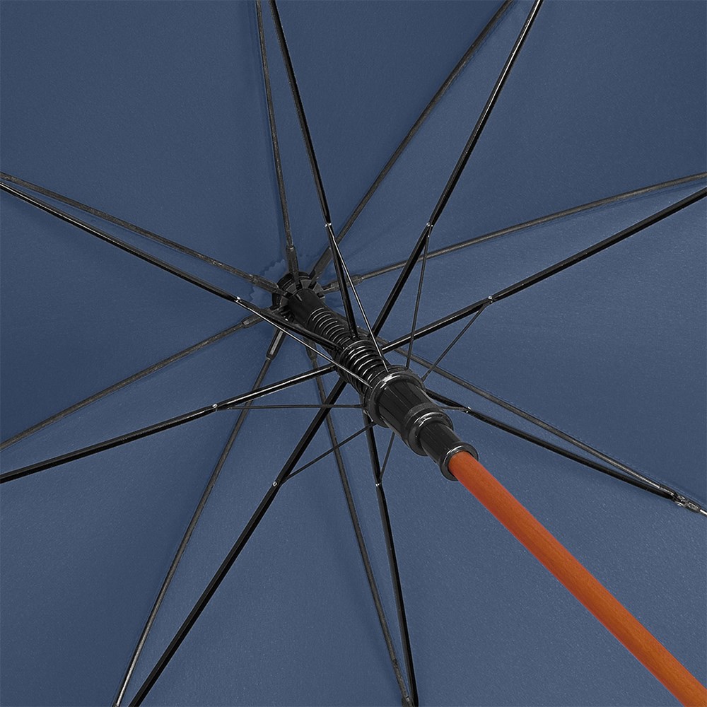 Automatik-Stockschirm mit Echtholzstock und Echtholzgriff Komfortable Automatik-Funktion zum schnellen Öffnen, Windproof-System für höhere Gestell-Flexibilität und bessere Windsicherheit, flexible Fiberglasschienen, massiver Echtholzstock, Rundhakengriff und Top aus Echtholz